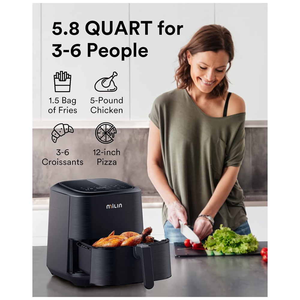 Fritadeira Elétrica AirFryer Capacidade 5L Painel Digital 1700W 110v MILIN Preto