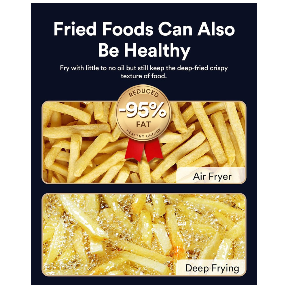 Reduza a gordura de seus pratos em até 85%-95% em comparação com a fritura convencional. Cozinhe com pouco ou nenhum óleo e aproveite alimentos fritos mais saudáveis e deliciosos.