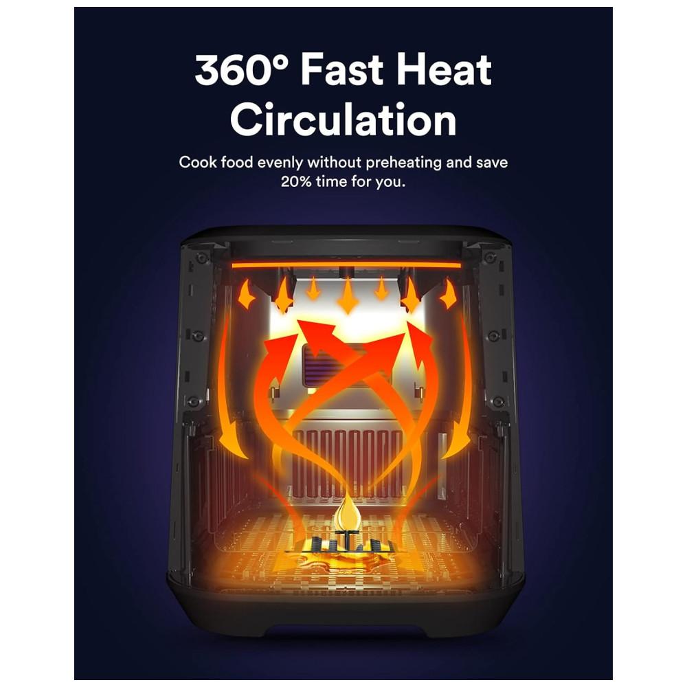 Graças ao inovador fluxo de ar e ao design eficiente do orifício de ventilação, a Fritadeira de Ar Milin aquece de maneira rápida e uniforme, garantindo que seus alimentos fiquem perfeitamente crocantes. Com um tempo de preparo mais rápido do que a fritura tradicional, ela também ajuda a reduzir o excesso de óleo, promovendo refeições mais saudáveis.
