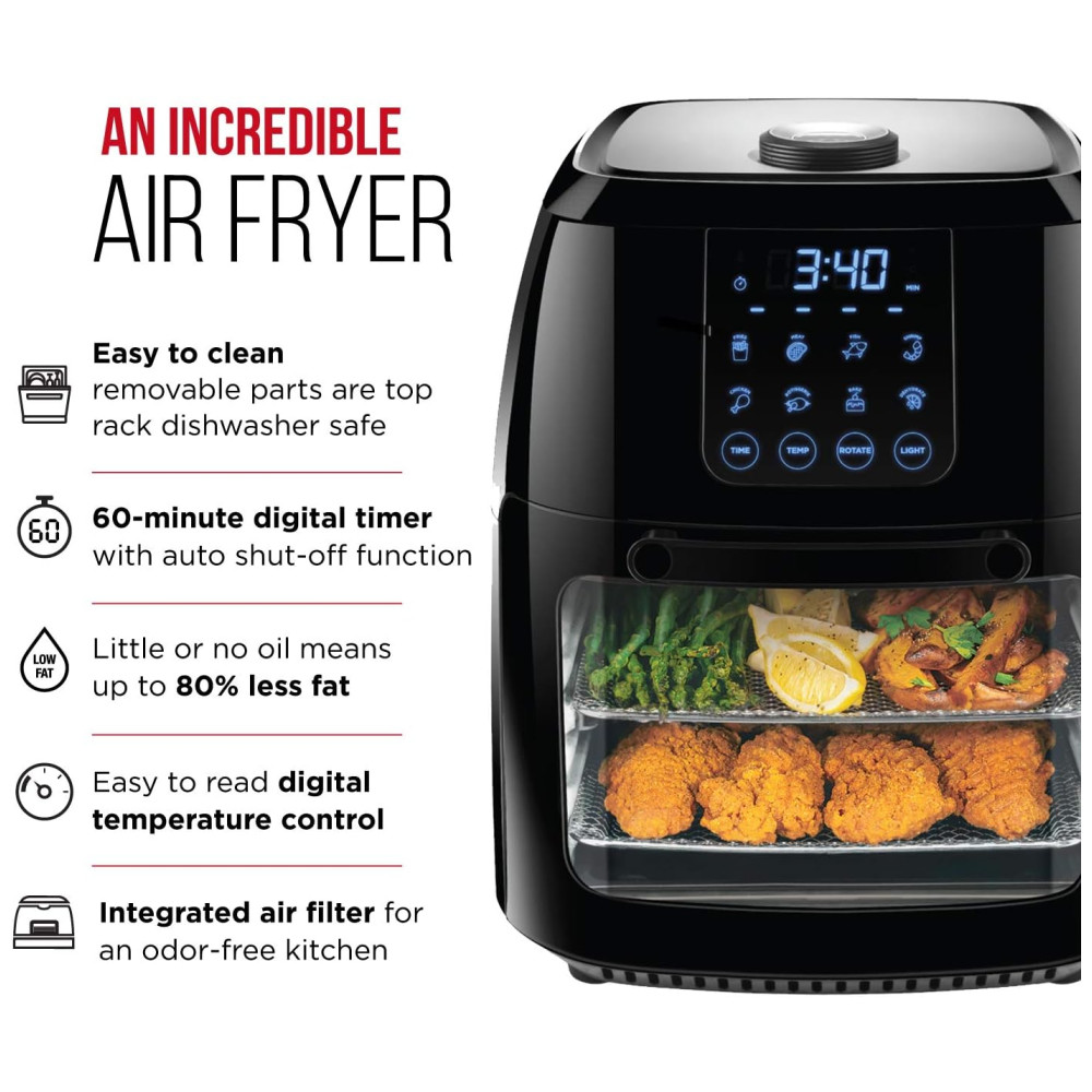 Fritadeira elétrica AirFryer com 6L de Capacidade e Painel de Controle 110v CHEFMAN 6 Liter Digital Air Fryer Rotisserie Preto