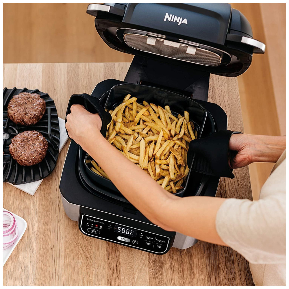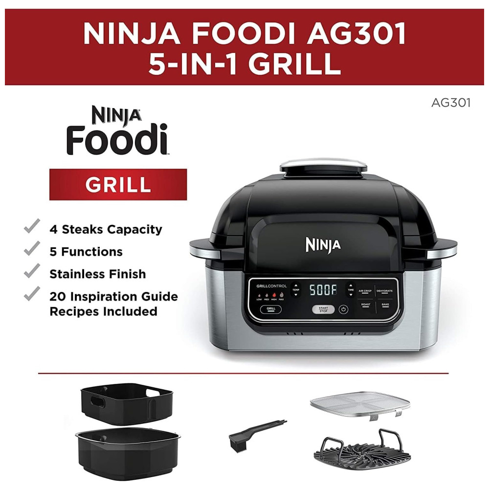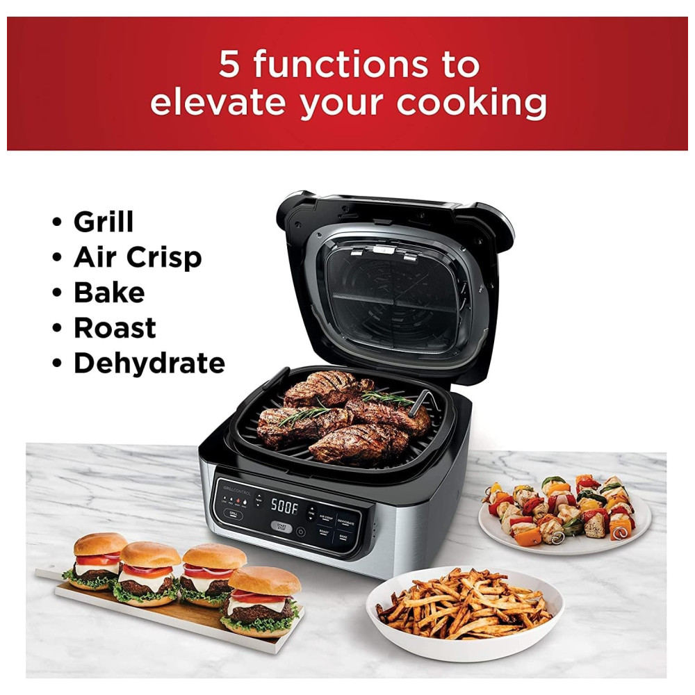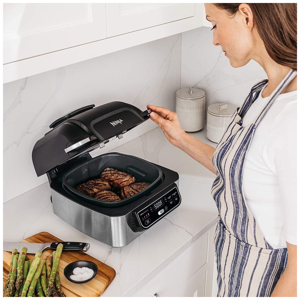 Descubra o Ninja Foodi Grill Original: A fritadeira que grelha, sela e air fry crisps. Fritadeira e grill indoor.