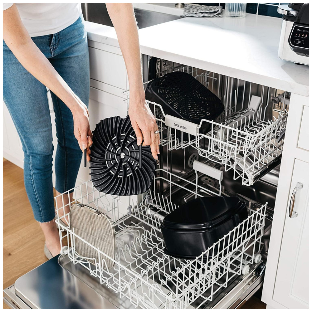 Fácil de Limpar: Grelha antiaderente revestida de cerâmica, cesto crocante e panela de cozimento são seguros para lava-louças.