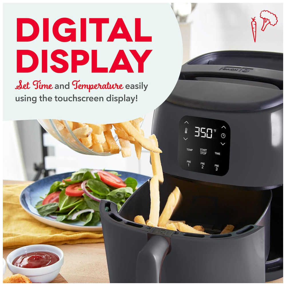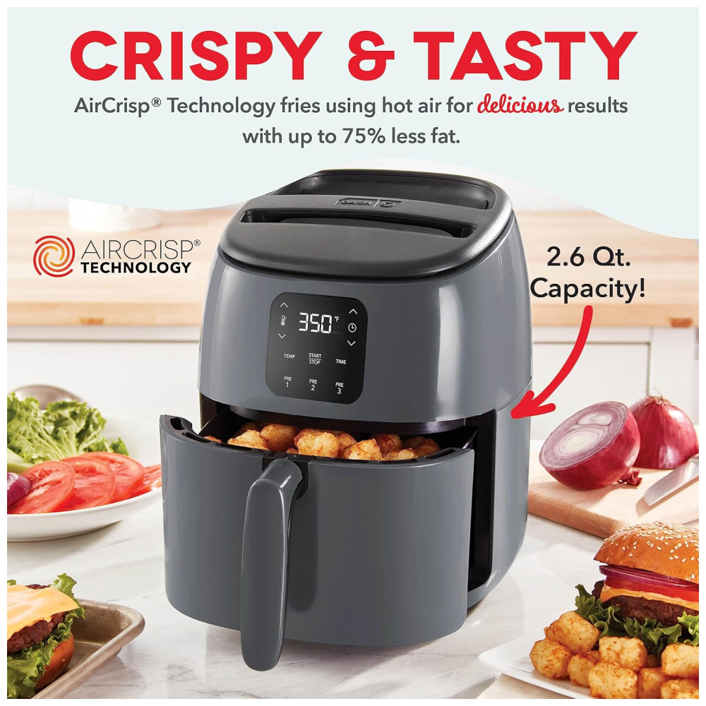 Fritadeira Elétrica AirFryer Digital Capacidade 2.4L 1000W 110v DASH DCAF260GBGY02 Cinza escuro