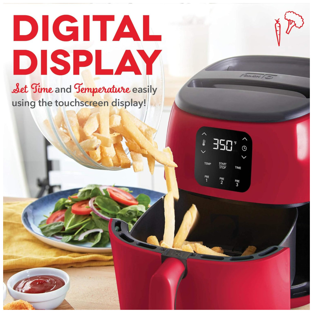 Fritadeira Elétrica AirFryer Digital Capacidade 2.4L 1000W 110V DASH DCAF260GBRD02 Vermelho