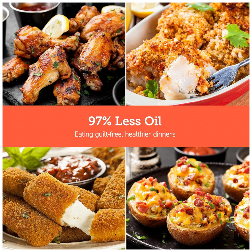 REFEIÇÕES SEM CULPA: Cozinhe suas refeições com até 97% menos óleo do que as fritadeiras tradicionais, mantendo os mesmos resultados crocantes.