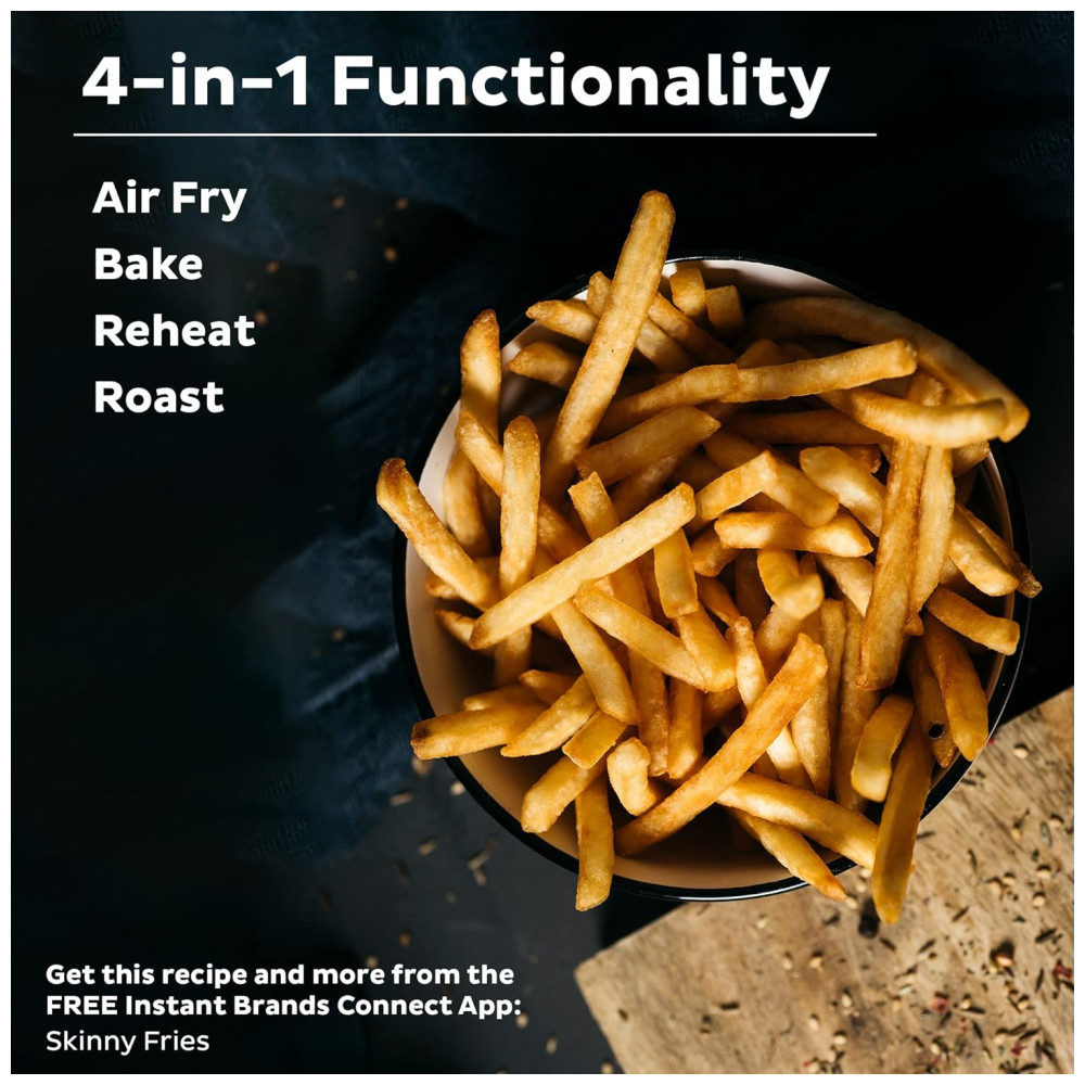 Descubra Receitas Incríveis: Inclui o aplicativo gratuito Instant Brands Connect, onde você pode encontrar novas receitas para criar favoritos rapidamente e preparar refeições deliciosas. Disponível para iOS e Android.
