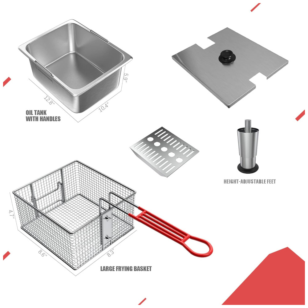 FRITADEIRA PROFISSIONAL – Fabricada em aço inoxidável de grau comercial, esta fritadeira é durável tanto para uso comercial quanto doméstico. As bordas são suavemente acabadas e cumprem os padrões ETLus. Perfeita para uso comercial em restaurantes, supermercados, lanchonetes, festas e muito mais. Ideal para fritar asas de frango, dumplings, rolinhos primavera, palitos de mussarela, jalapeños recheados, entre outros.