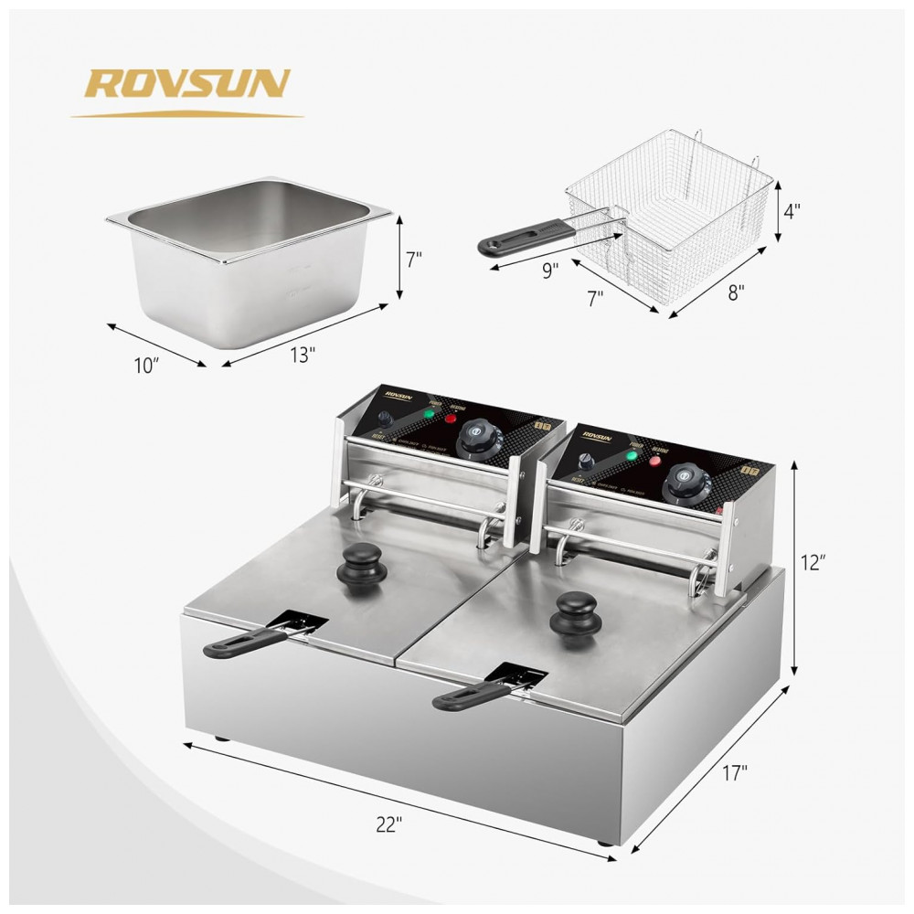 Nome do Modelo: ROVSUN 21,6L 110V 5000W Fritadeira Elétrica de Tanque Duplo