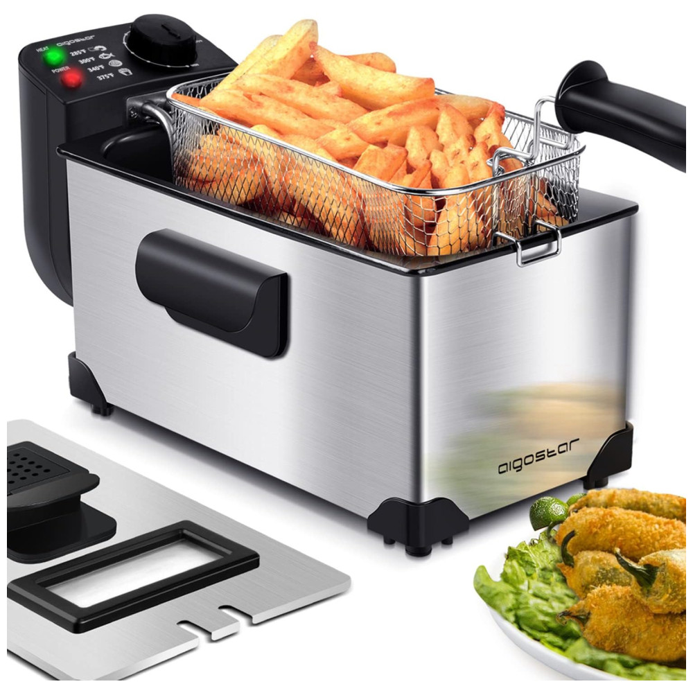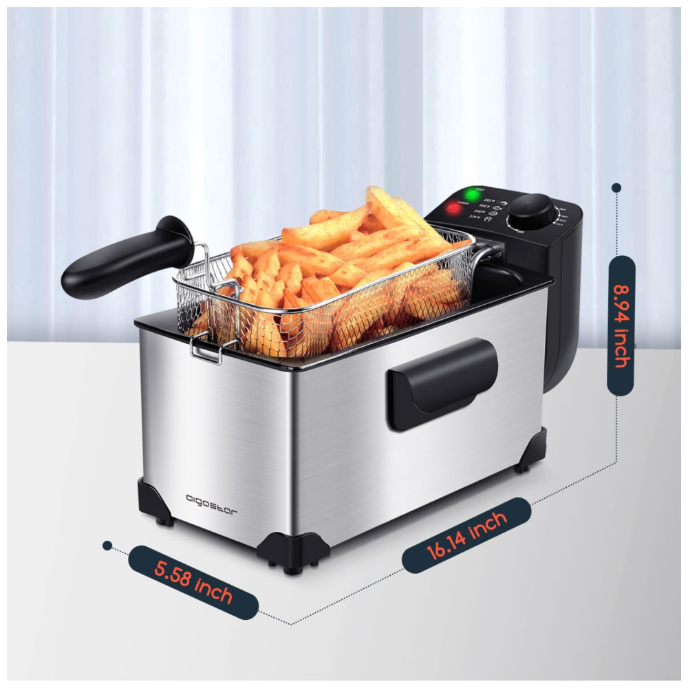 Fritadeira Elétrica Industrial a Óleo 3L com Controle de Temperatura 1650W Aço Inox 110V AIGOSTAR Cinza