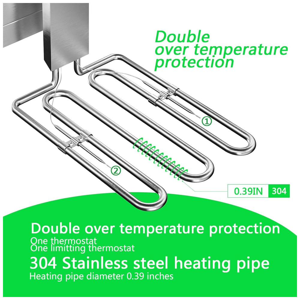 Controle de Temperatura e Timer: Esta fritadeira elétrica com cesto grande possui função de controle de temperatura e timer de 60 minutos, com temperatura ajustável de 50°C a 200°C. Uma placa de proteção instalada equilibra eficazmente a temperatura do óleo, garantindo que os alimentos sejam fritos de maneira uniforme. A fritadeira desliga-se automaticamente quando a temperatura ultrapassa 240°C ou atinge o nível definido.