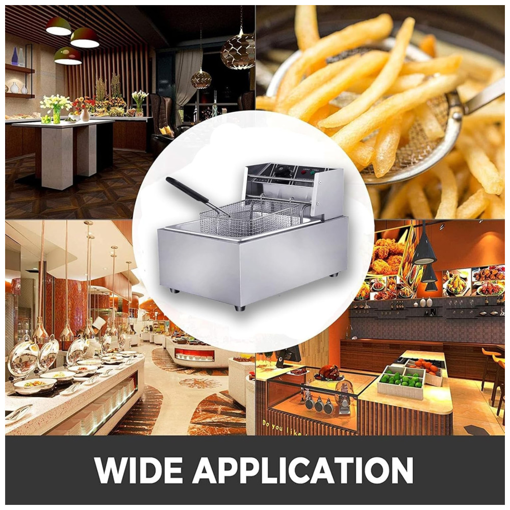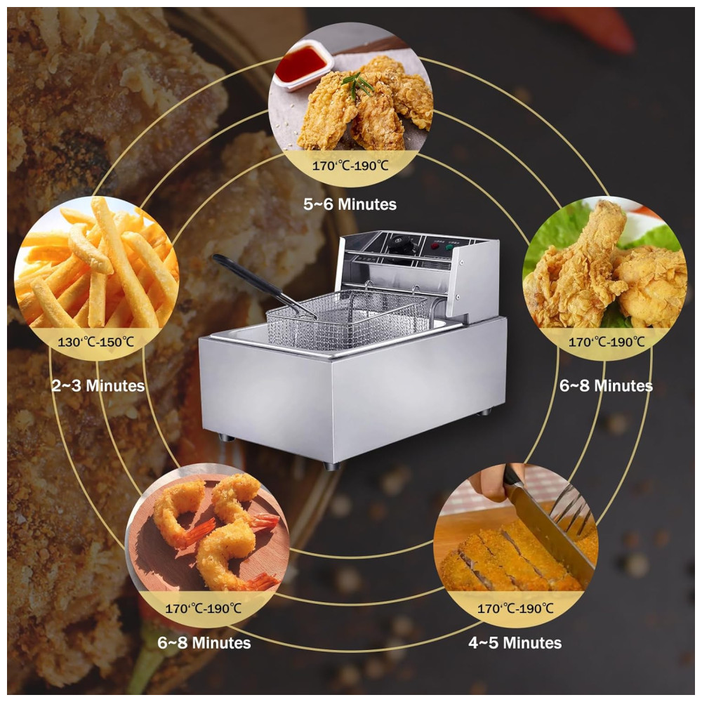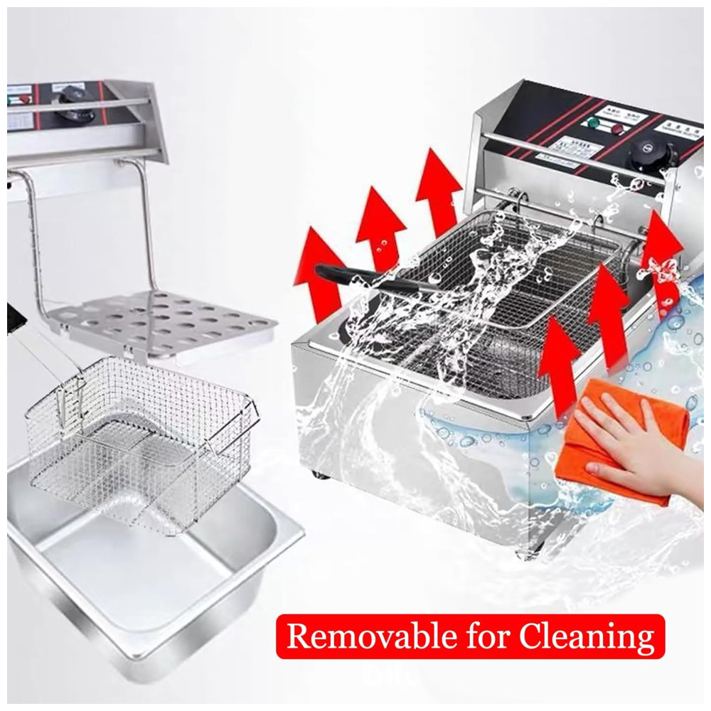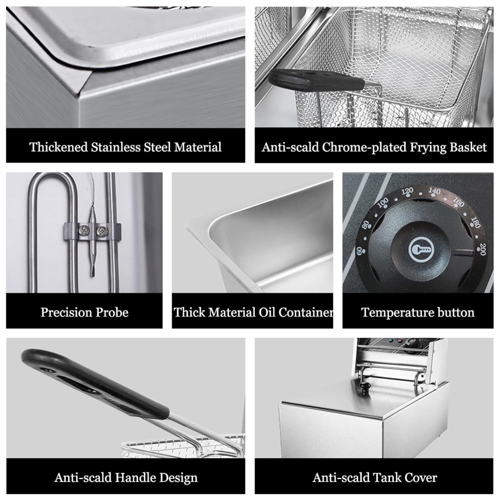 Fritadeira profissional Esta fritadeira de aço inoxidável é durável tanto para uso quanto doméstico. Perfeito para usos comerciais, como restaurantes, supers, lanchonetes, lanchonetes, festas, etc. Fácil de operar e limpar. Adequado para asas de búfalo, frango, bolinhos, rolinhos de ovos, rolinhos de camarão, palitos de mussarela, poppers de jalapeno, etc