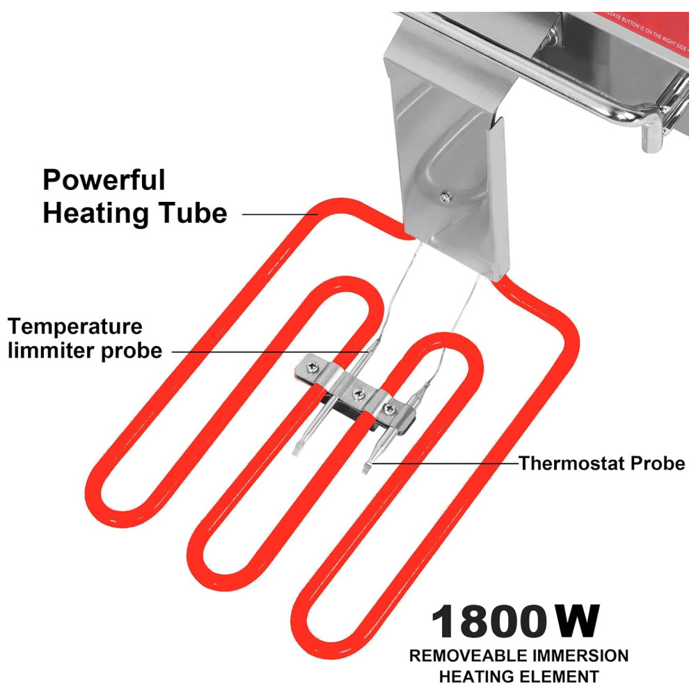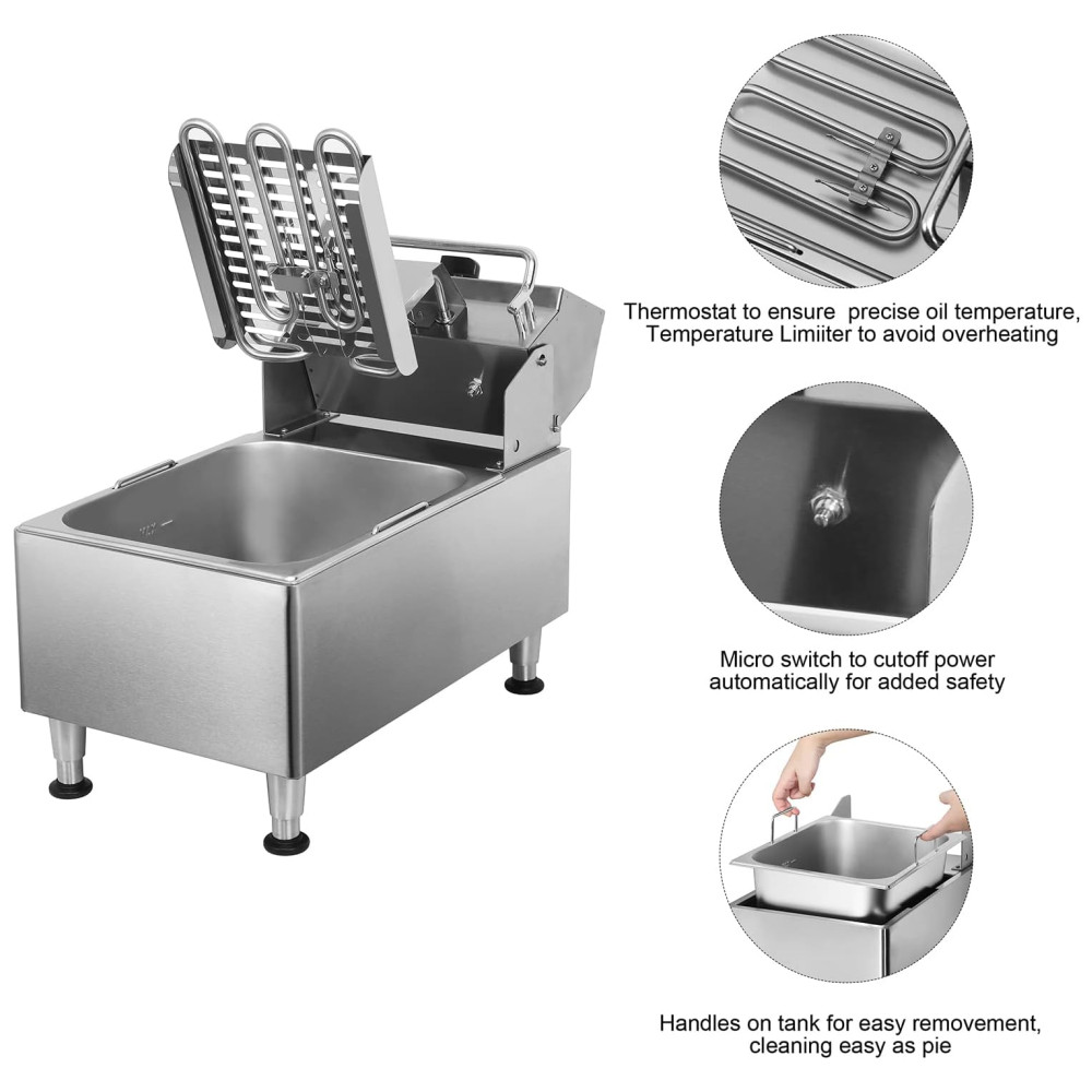 DESEMPENHO PODEROSO: Fritadeira de 1800 watts com capacidade de 6 litros de óleo para servir alimentos fritos lucrativos aos seus clientes famintos. Esta fritadeira não só frita rapidamente, mas também atinge a crocância perfeita.