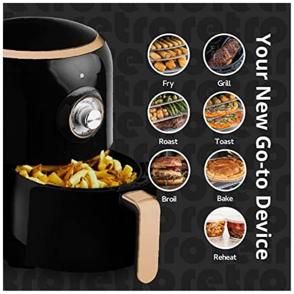 Fritadeira elétrica sem óleo Aria Air Fryers retrô preta cesto cerâmico 19L 800W antiaderente dials analógicos fácil limpeza 110V