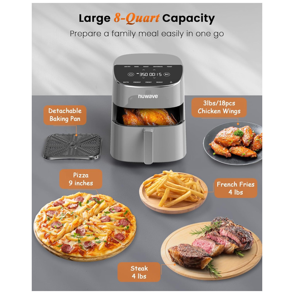 Fritadeira Elétrica sem Óleo Nuwave Brio Plus 8 Litros Livre de Substâncias Tóxicas 7 Funções de Cozimento Automático