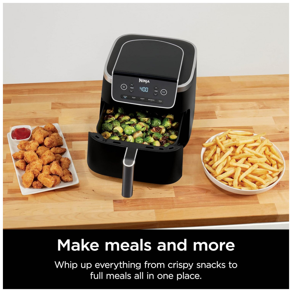 Apresentamos a Fritadeira Ninja Air Fryer Pro, a maneira rápida e fácil de obter aquela crocância perfeita com até 204°C de calor. A Tecnologia Air Crisp envolve seus alimentos favoritos com ar superaquecido para resultados quentes e crocantes. Com capacidade de 5 Litros, cozinhe até 1,8 kg de batatas fritas usando pouco ou nenhum óleo e saboreie seus pratos favoritos sem culpa. Com funções para Fritar, Assar, Grelhar, Reaquecer e Desidratar, as opções são infinitas. As 5 funções de cozimento permitem satisfazer qualquer desejo, desde lanches crocantes até refeições completas. Depois, a limpeza é fácil com a cesta antiaderente e a placa crocante.