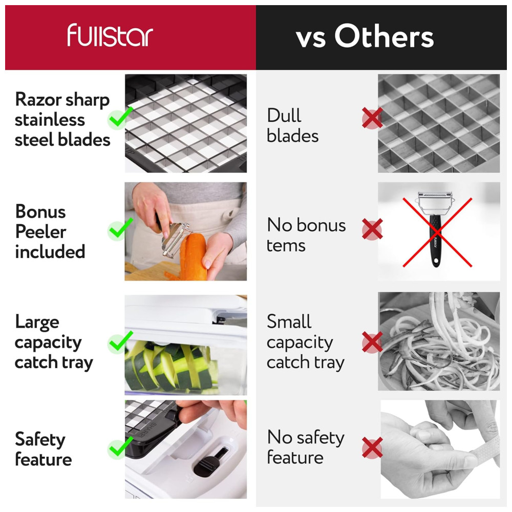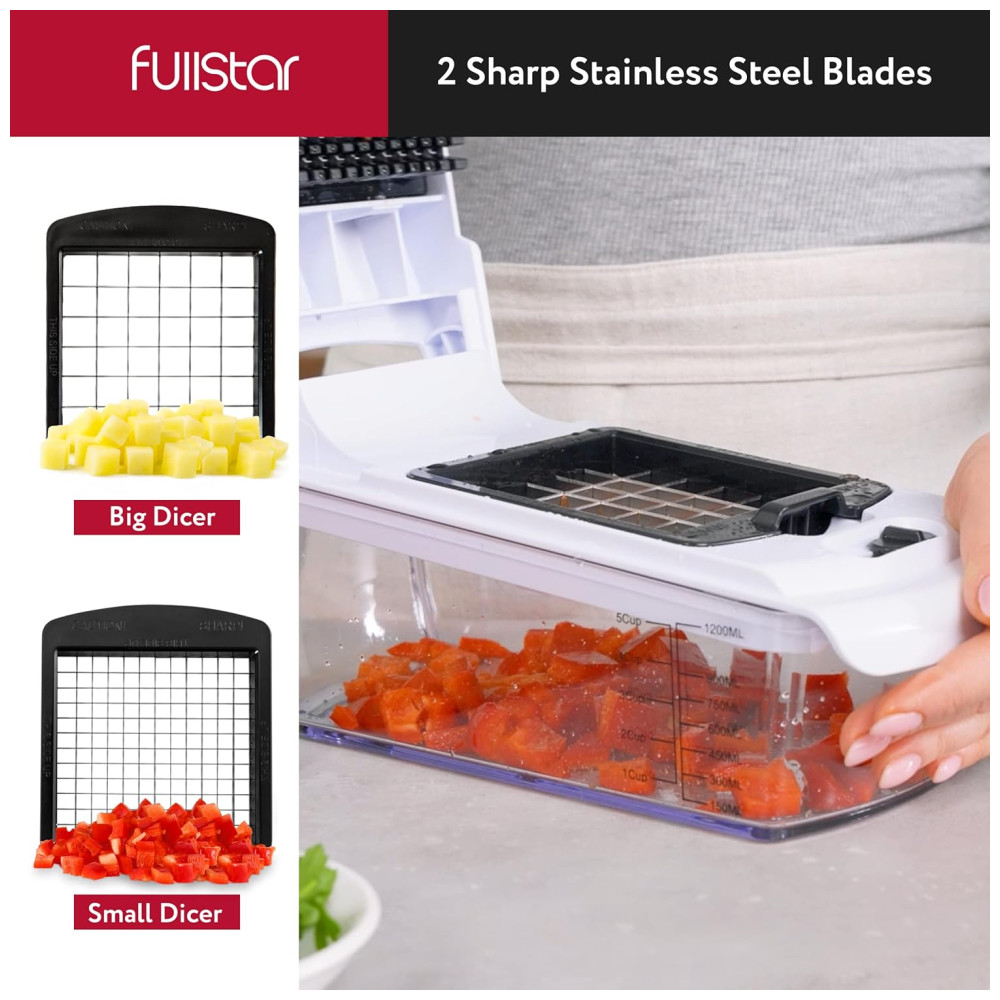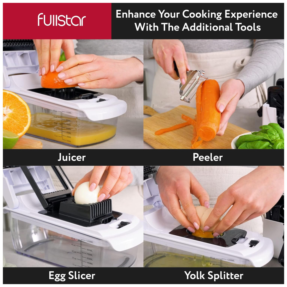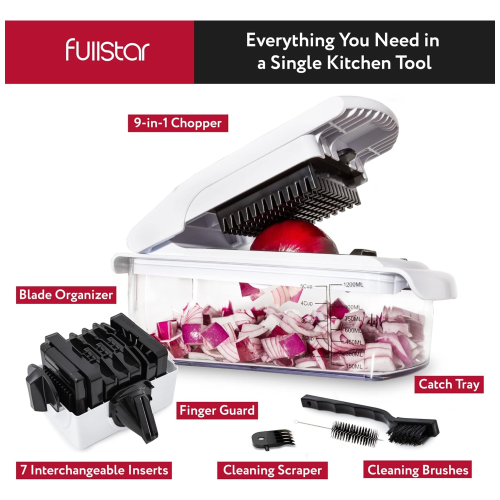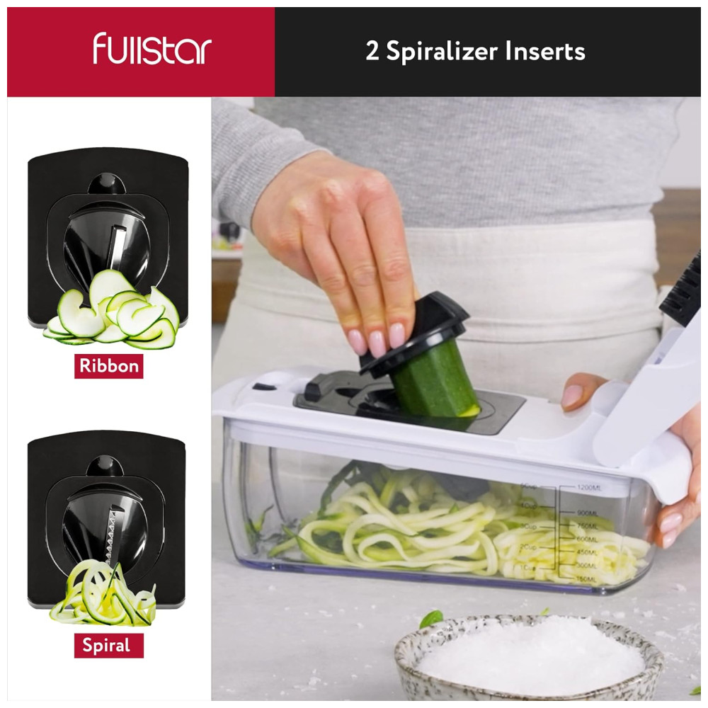 Fullstar Picador de Legumes e Vegetais 7 em 1 Ajustável Recipiente de 1.2L Branco