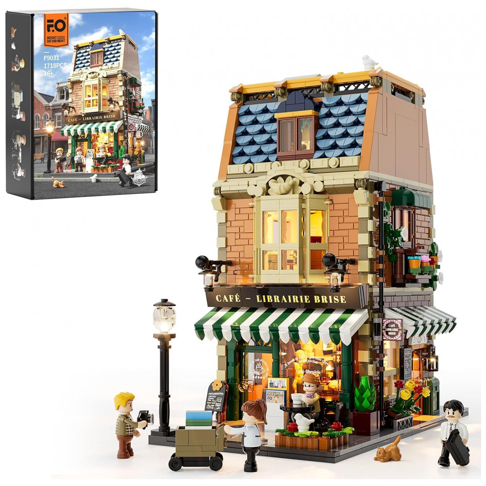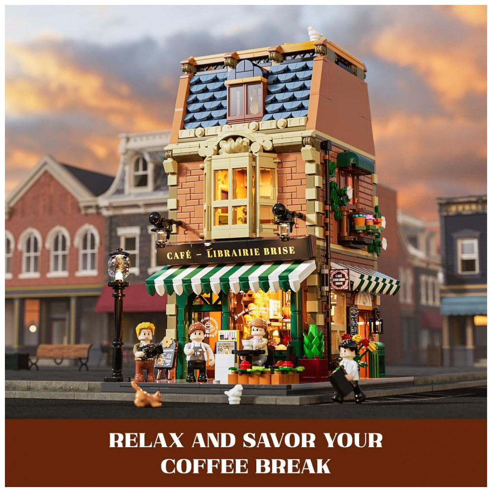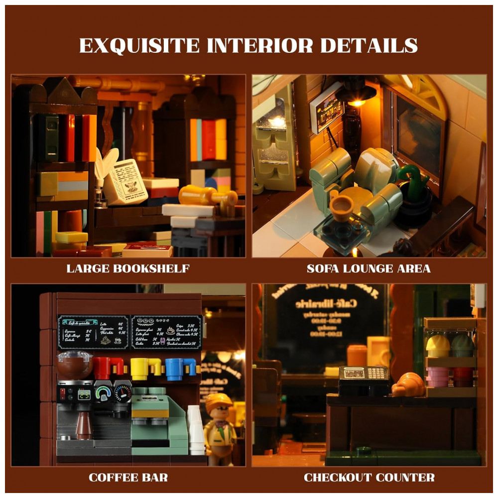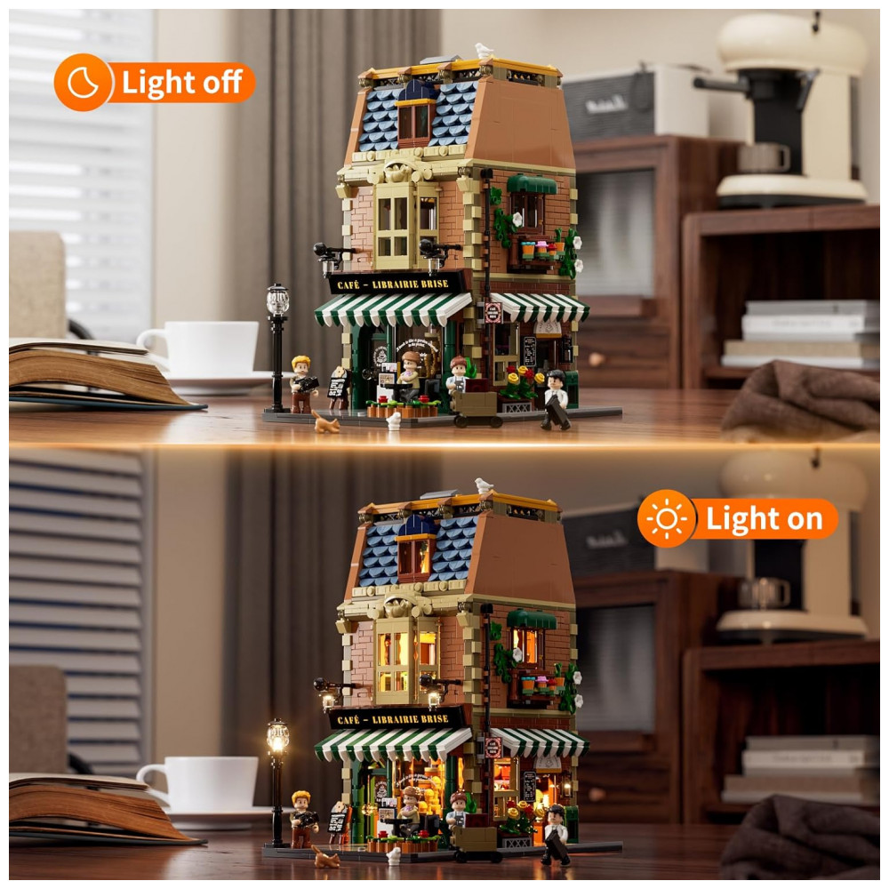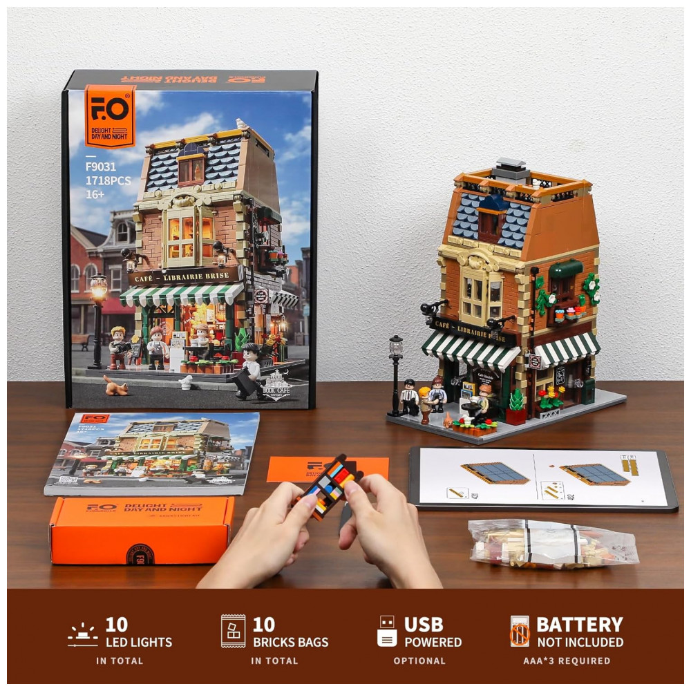 FUNWHOLE Conjunto de Blocos de Construção Luz LED Café na Cidade 1718 Peças para Adultos e Adolescentes
