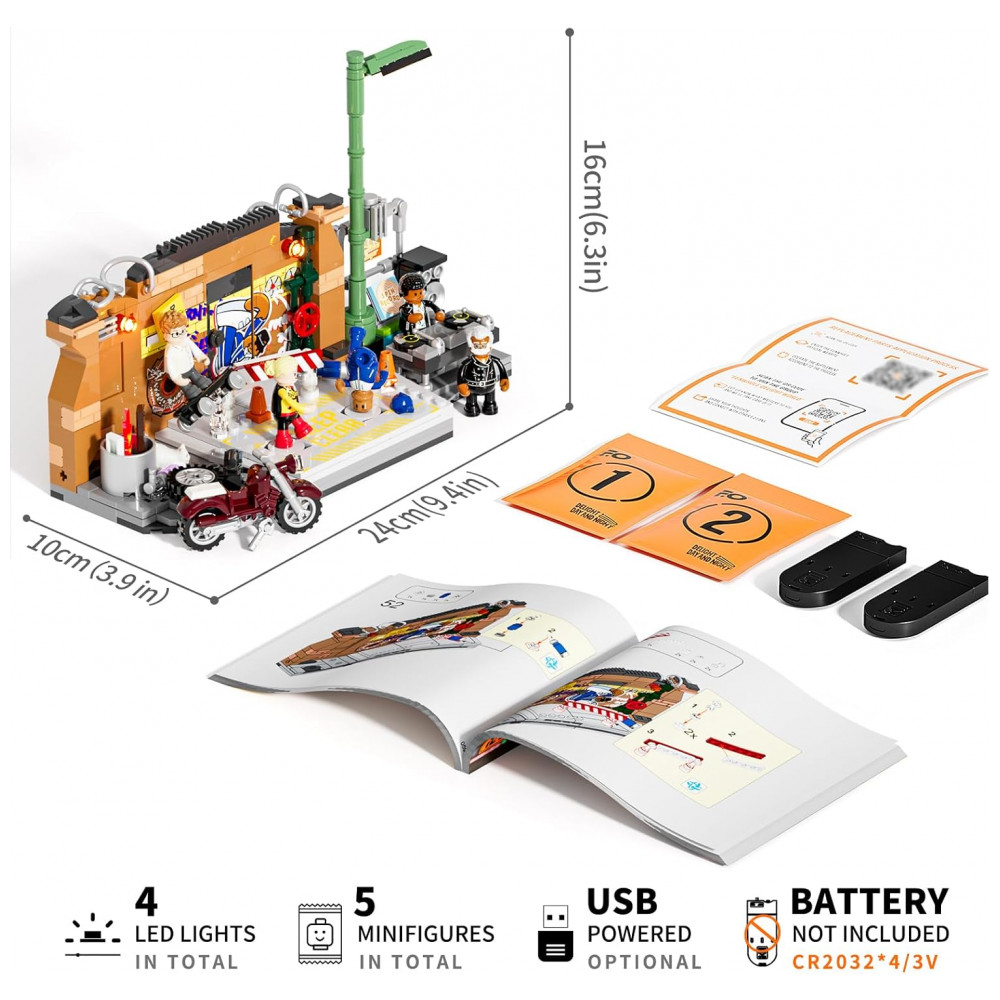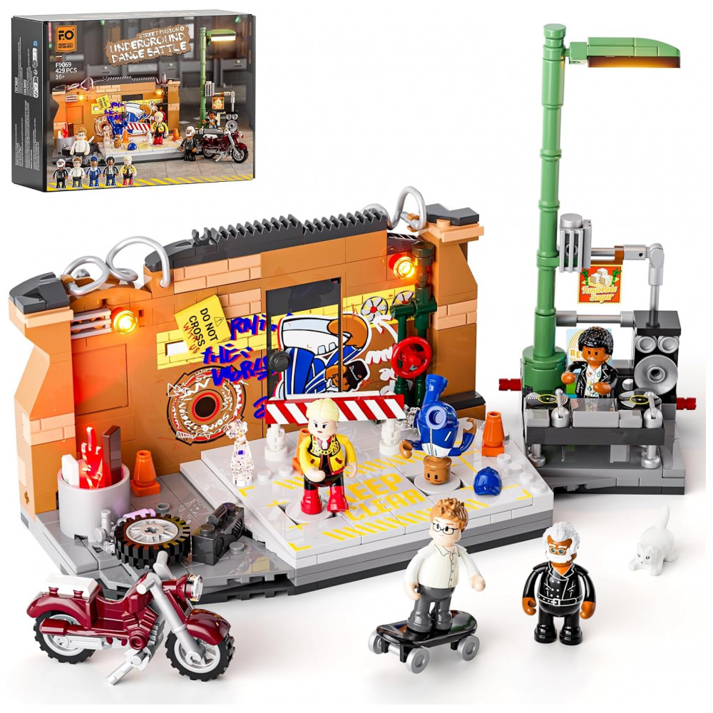 FUNWHOLE Kit de Blocos de Montar Batalha de Dança Underground com LED 429 Peças – Ilumine Sua Cultura Street