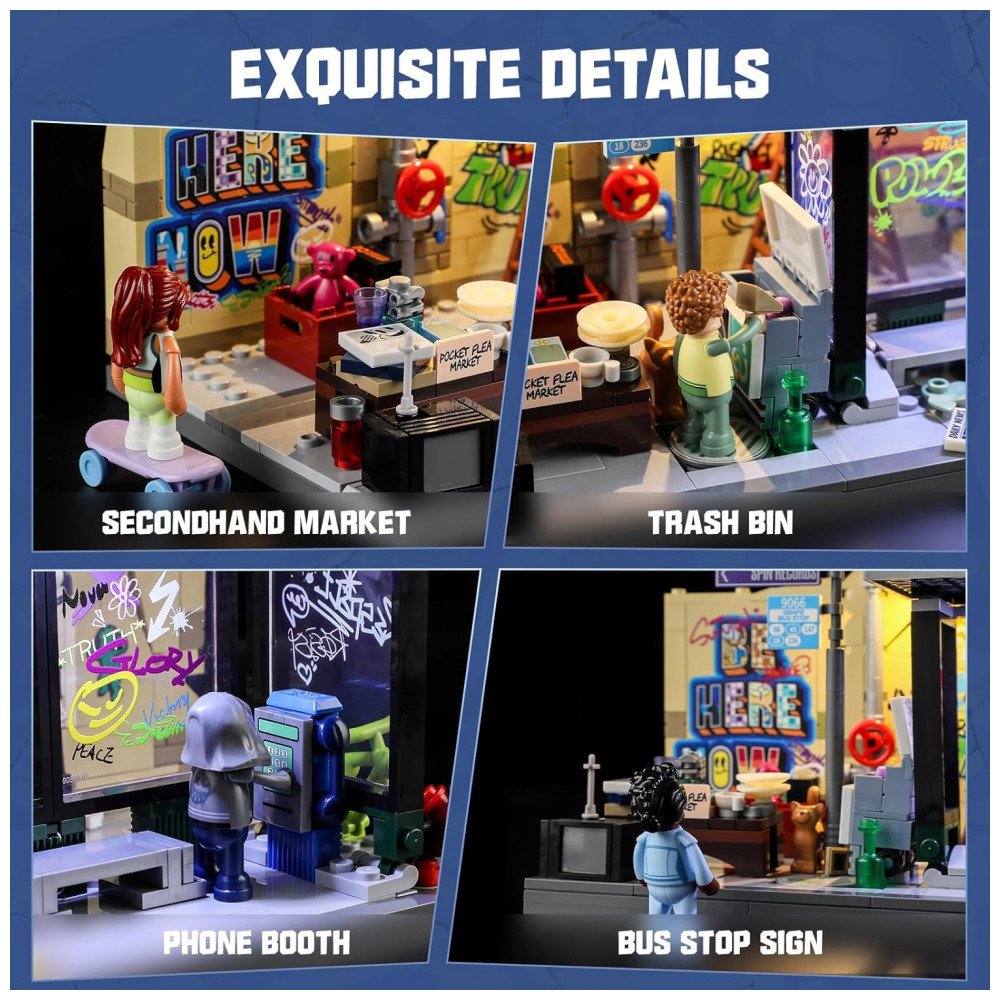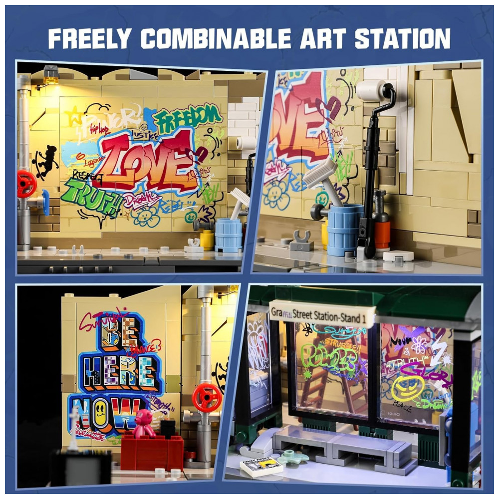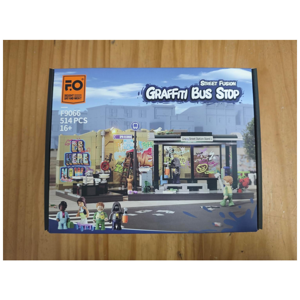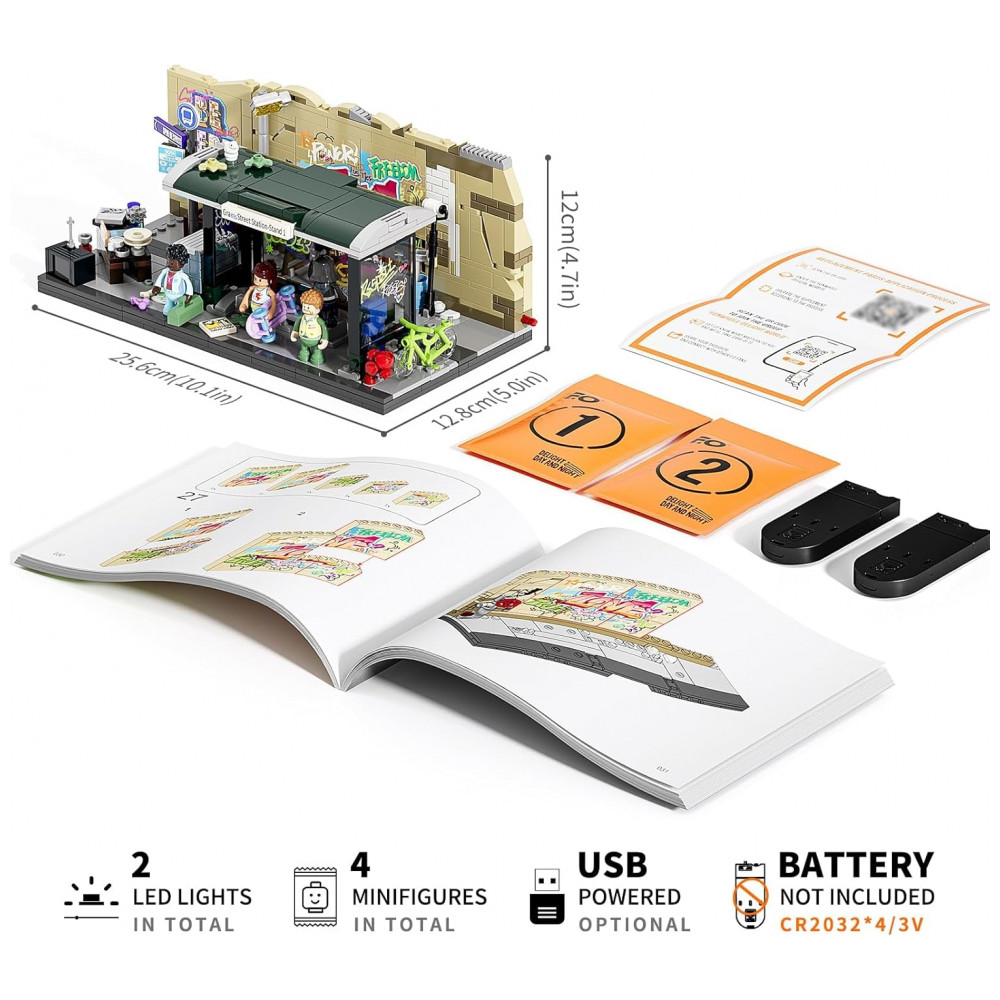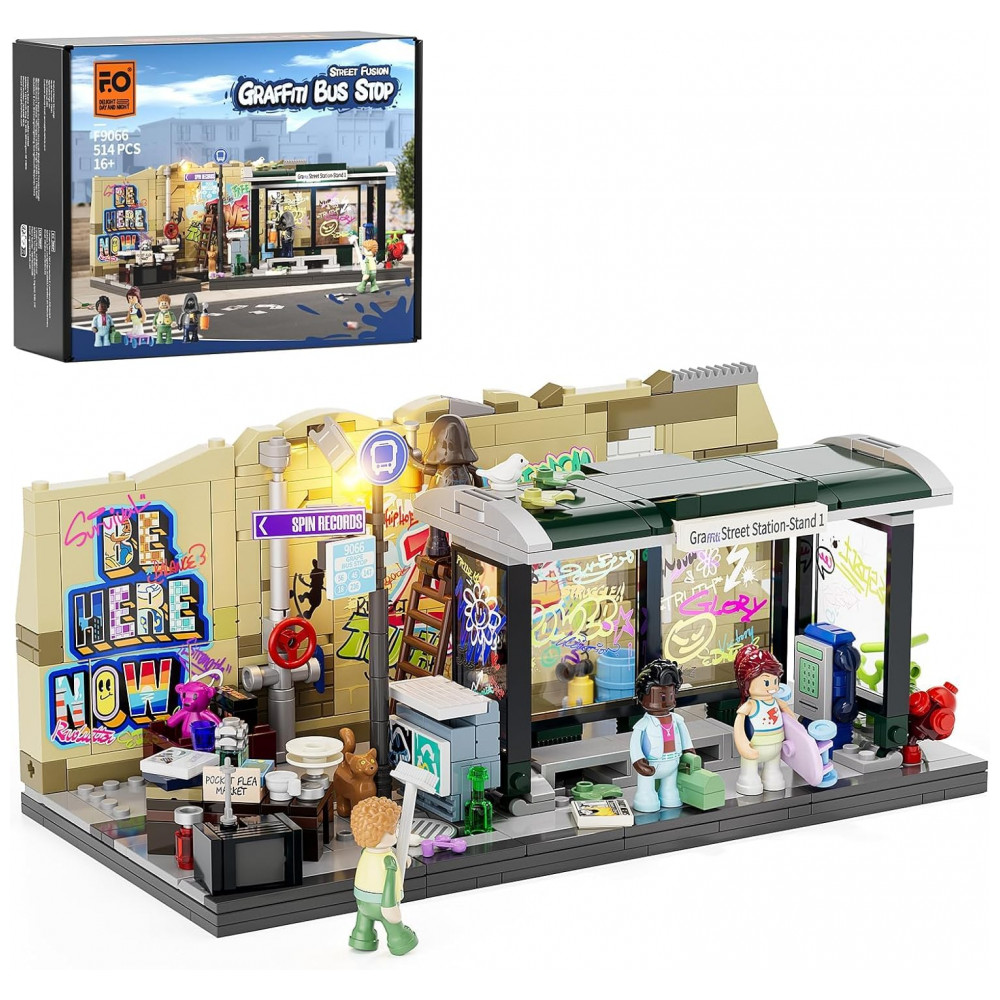 FUNWHOLE Kit de Blocos de Montar Parada de Ônibus Grafite com Luz LED – 514 Peças para Adultos e Jovens