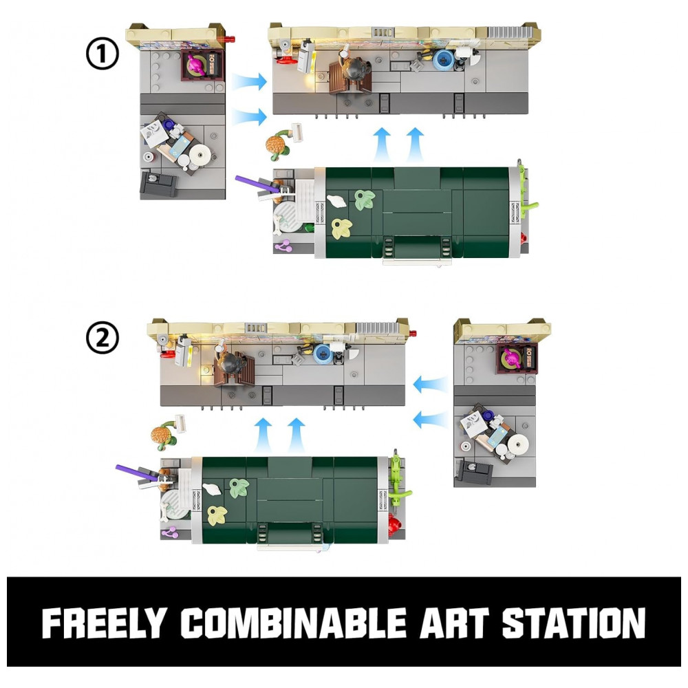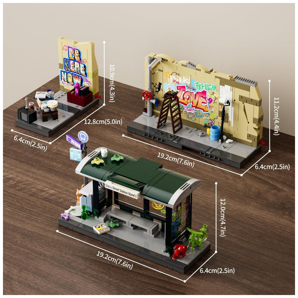 A construção é dividida em três módulos combináveis: módulo principal do ponto de ônibus, módulo do muro grafitado e módulo de feira de rua, que podem ser organizados em diferentes composições ou integrados a outros cenários urbanos. O produto é voltado para adolescentes e adultos, com foco em exposição em coleções de cidade e cultura de rua.