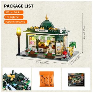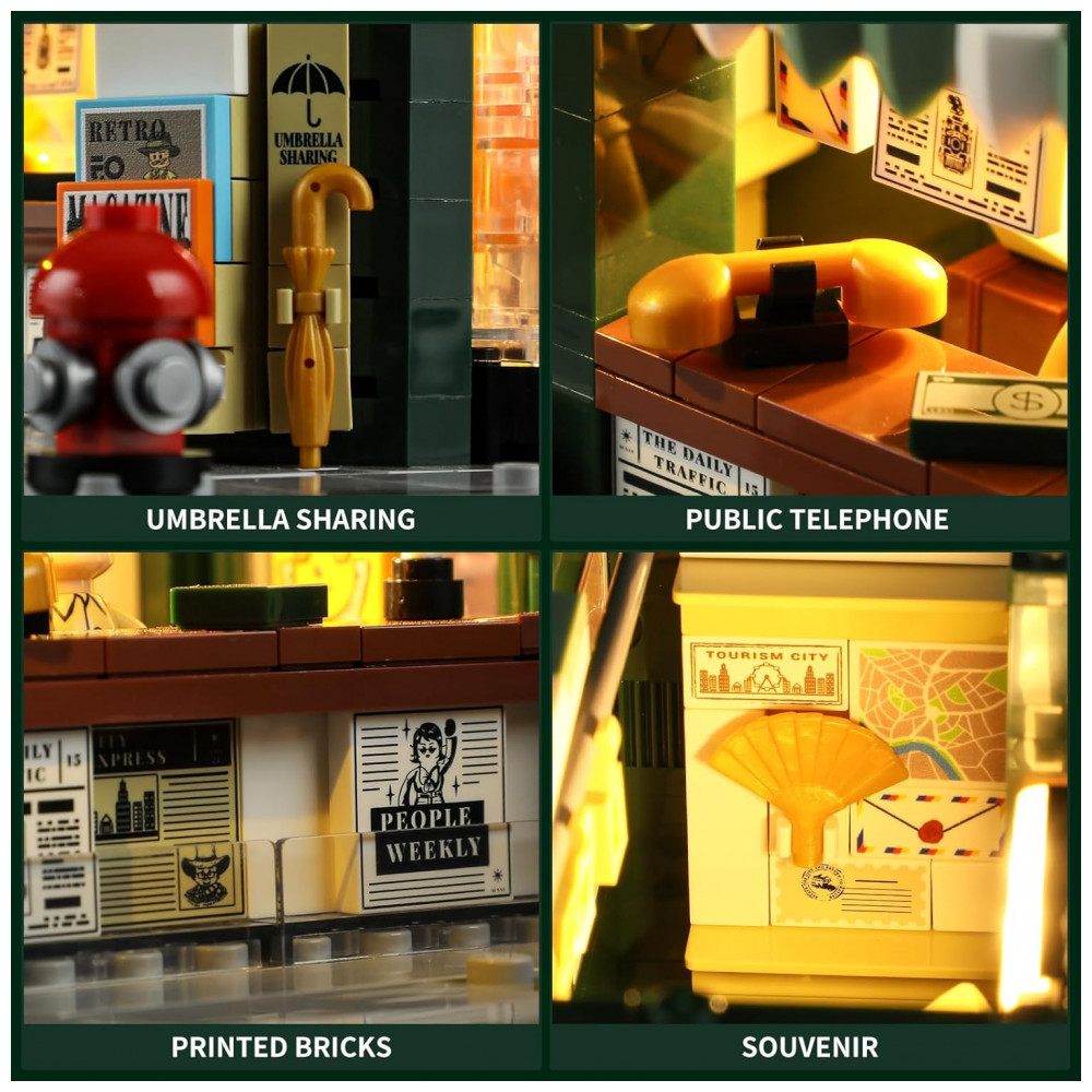 FUNWHOLE Quiosque de Notícias com Iluminação LED – 556 Peças para Adultos e Adolescentes