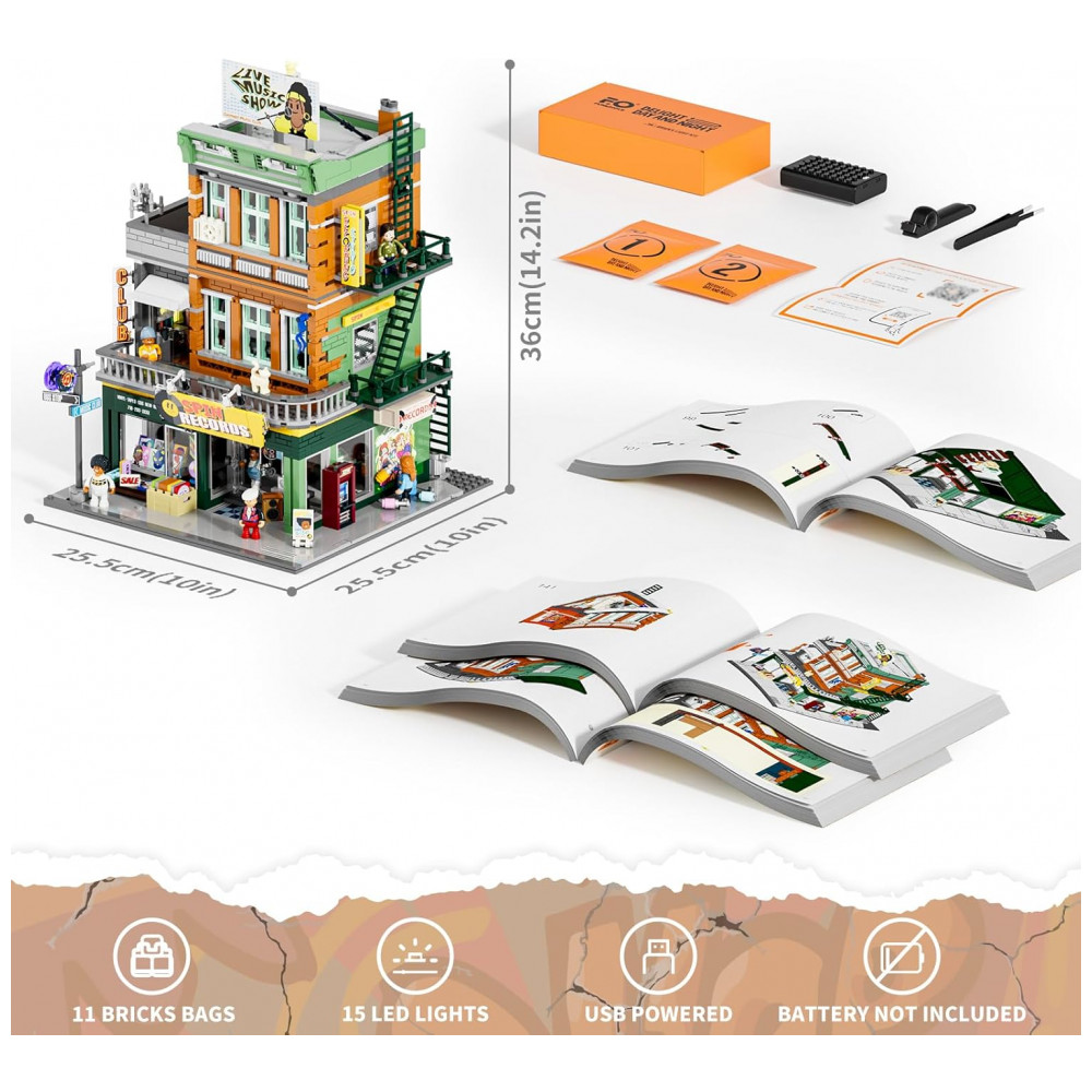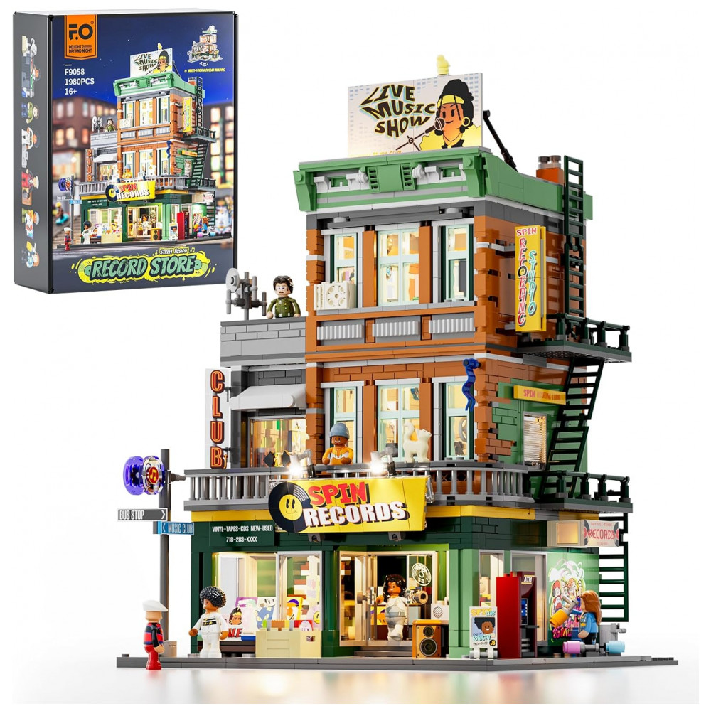 FUNWHOLE Set de Blocos de Montar Loja de Discos com Iluminação – 1980 Peças para Adultos e Adolescentes