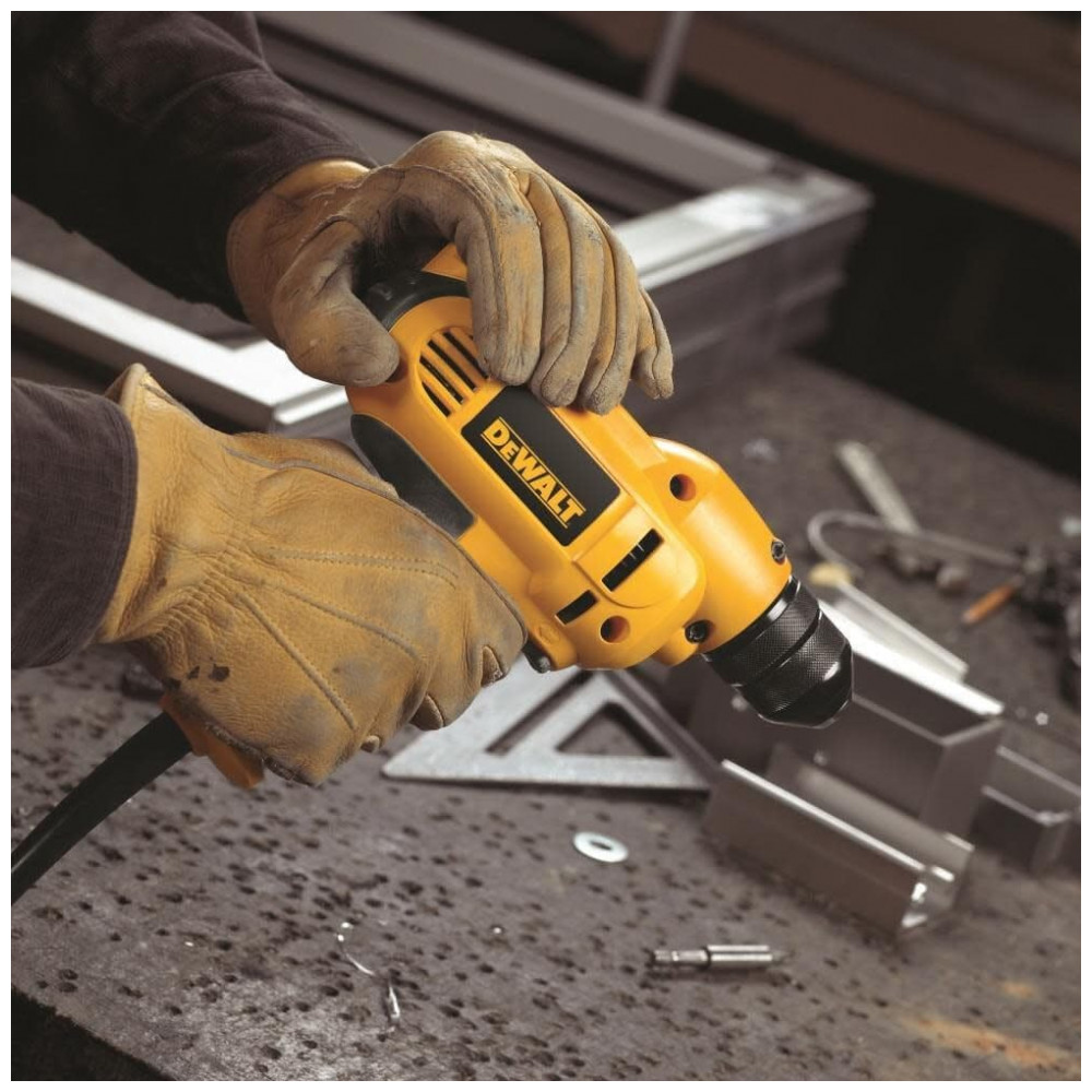 Furadeira com fio DEWALT tem 0 2.500 rpm com gatilho VSR para versatilidade em aplicações de perfuração e fixação