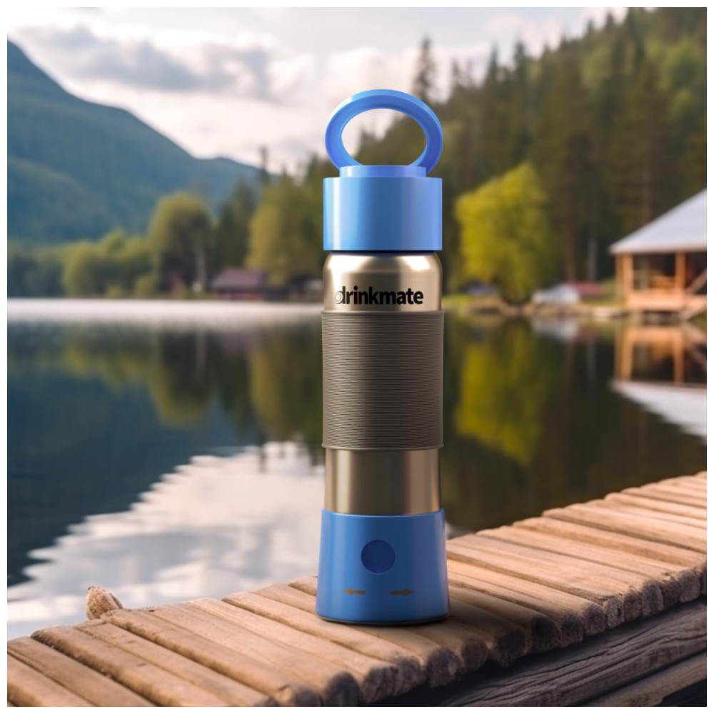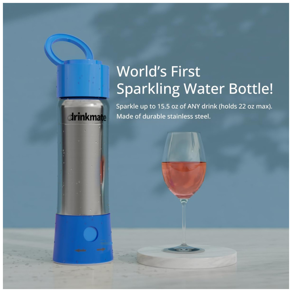 Garrafa de Água Carbonatada com 10 Carregadores de CO2 de 8g DrinkMate Azul