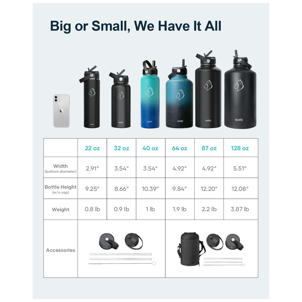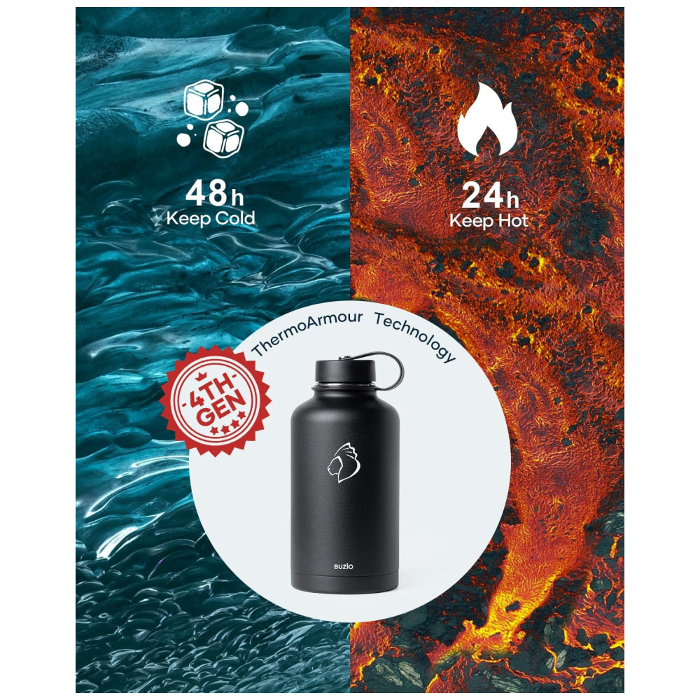 Garrafa Térmica 1900L Portátil com Isolamento a Vácuo Aço Inoxidável BUZIO Preto
