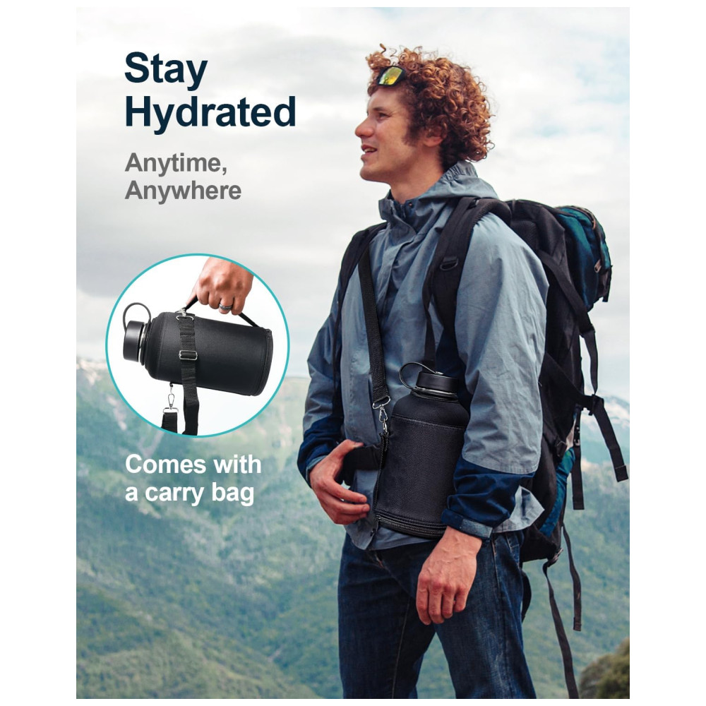 2 Caps Pack Esta garrafa de água de aço inoxidável de 64 oz vem com tampa de palha e tampa flexível, a tampa flexível é perfeita para a praia, camping e caminhadas, enquanto a tampa de palha é adequada para ciclismo e viagem