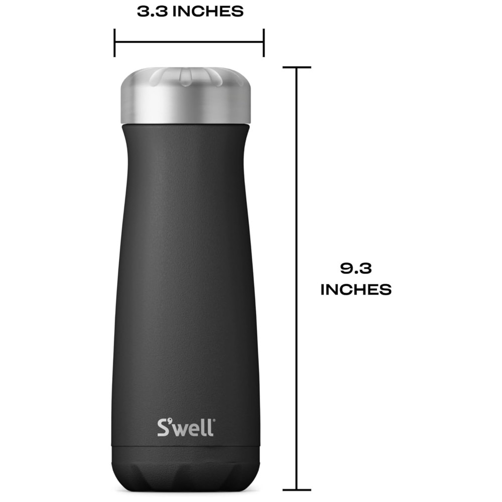 As canecas de viagem , café em aço inoxidável preto de 590 mL da Swell Traveler apresentam construção com isolamento a vácuo de camada tripla, projetado para manter as bebidas frias por até 28 horas ou quentes por até 15 horas com nossa exclusiva tecnologia Therma Swell. Cada caneca de viagem apresenta cores, impressões, padrões e texturas exclusivos, oferecendo funcionalidade superior. Apenas lavagem das mãos.