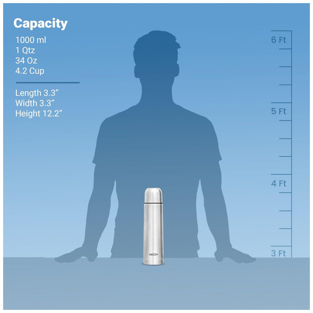 Garrafa Térmica para Água 1L em Aço Inoxidável Isolada a Vácuo de Parede Dupla com Tampa à Prova de Vazamentos sem BPA e Bolsa Térmica Milton Prata
