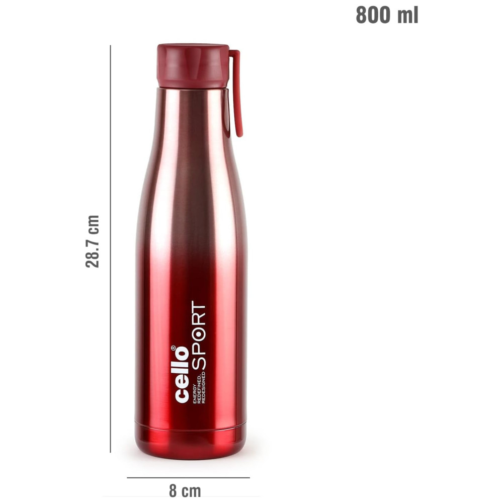 Garrafa Térmica para Água 800mL em Aço Inoxidável de Parede Dupla para Viagens Casa e Escritório Cello Dazzle Vermelha