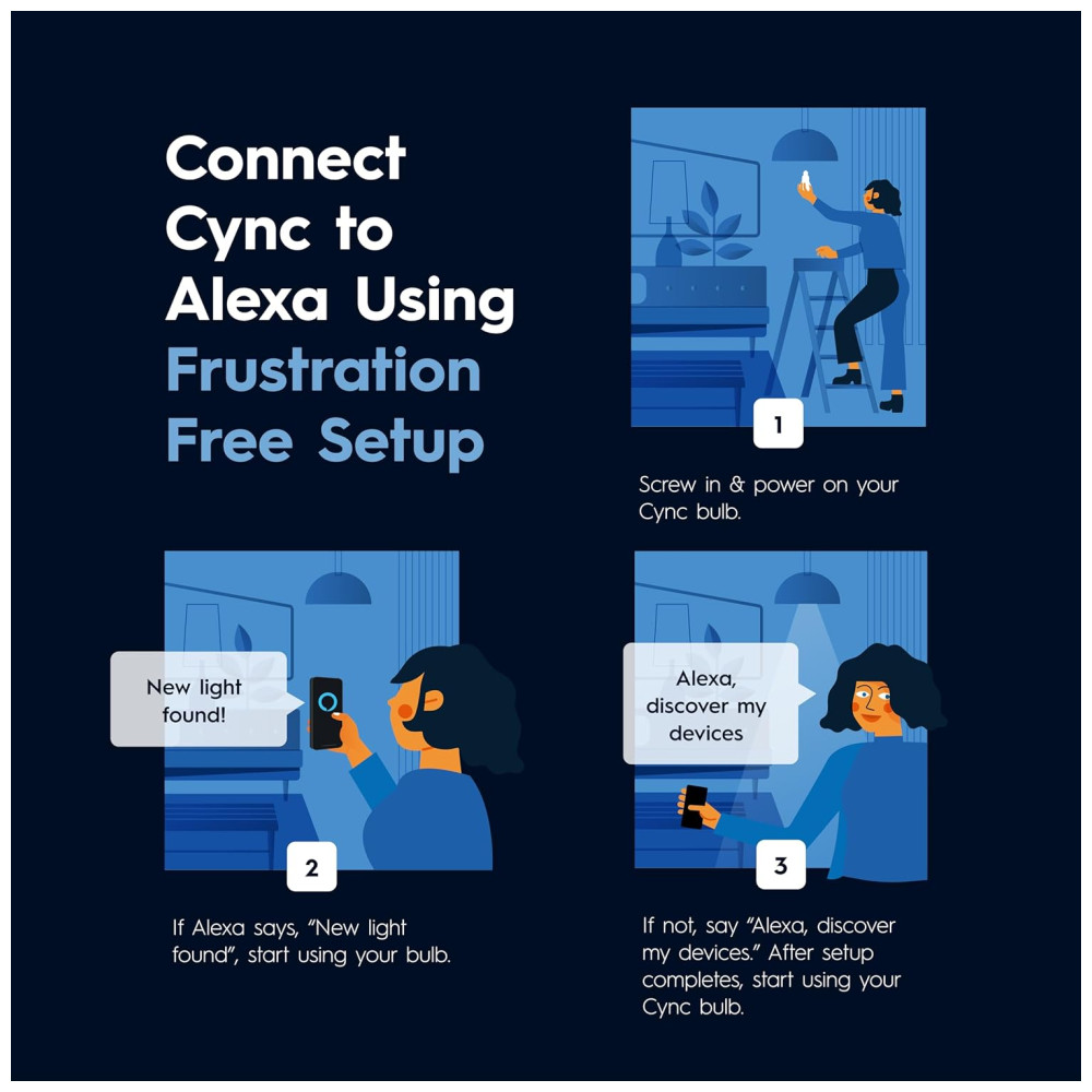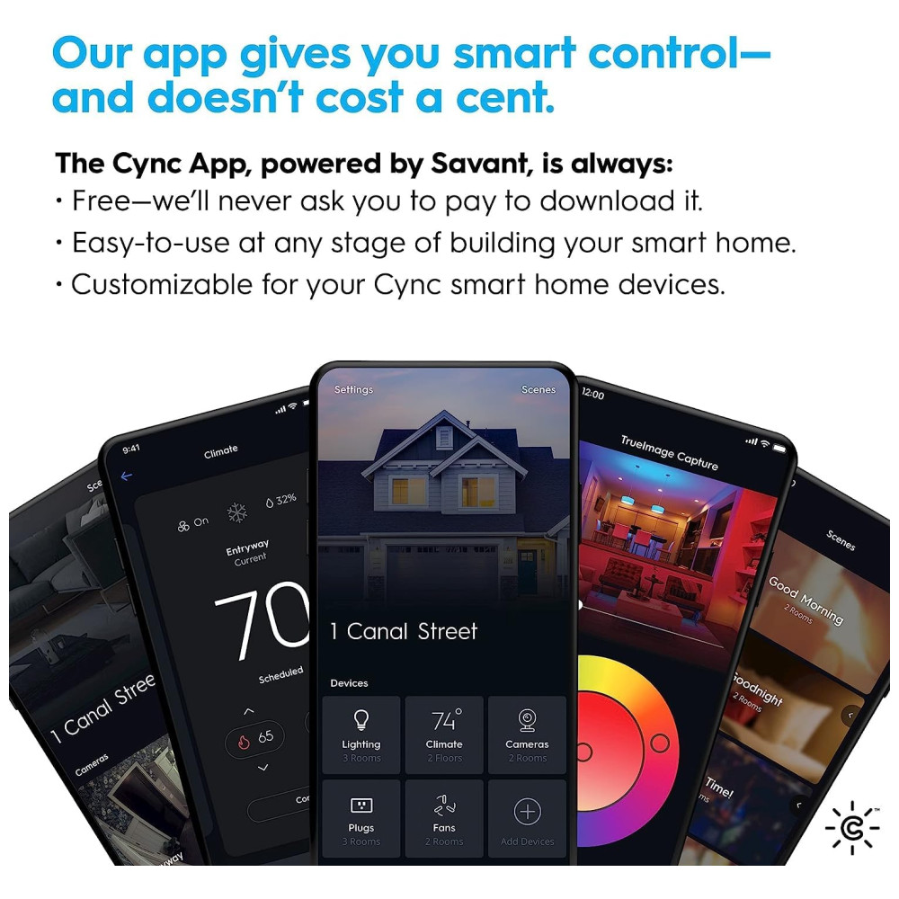 Gerencie suas lâmpadas inteligentes fora de casa obtenha mais segurança e conveniência doméstica controlando suas lâmpadas Wi Fi com o aplicativo móvel Cync. Com estas luzes inteligentes Cync, nunca volte para uma casa escura ou perturbe seu conforto da cama.