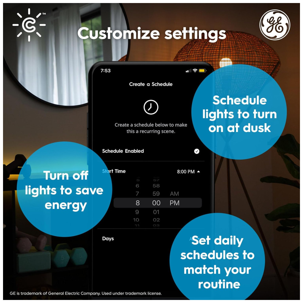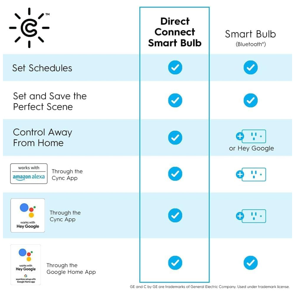 Lâmpadas Wi Fi conecte facilmente essas lâmpadas inteligentes diretamente ao seu roteador Wi Fi, fornecendo controle de voz para suas lâmpadas inteligentes Cync e C by GE por meio de assistentes de voz vendidos separadamente e controle fora de casa não é necessário hub ou ponte .