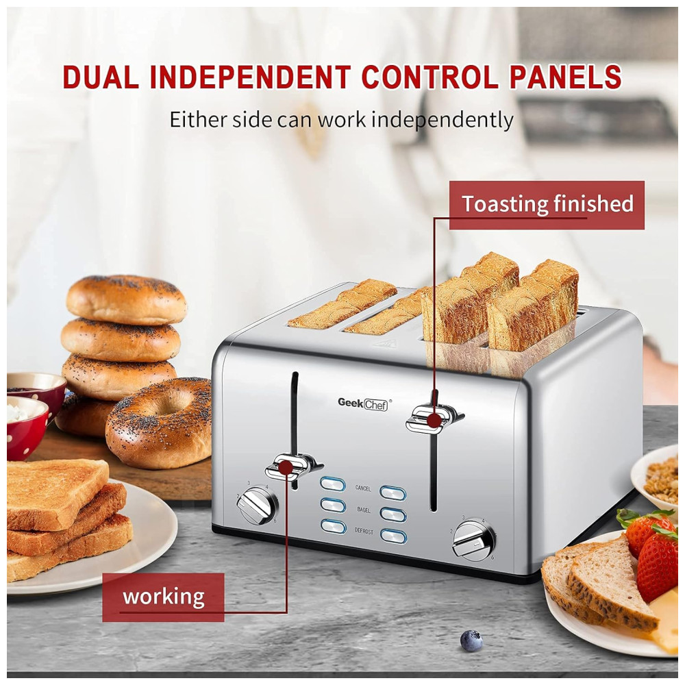 Geek Chef Torradeira de 4 Fatias com 6 Niveís e Função Bagel 1650W 110V Aço Inoxidável
