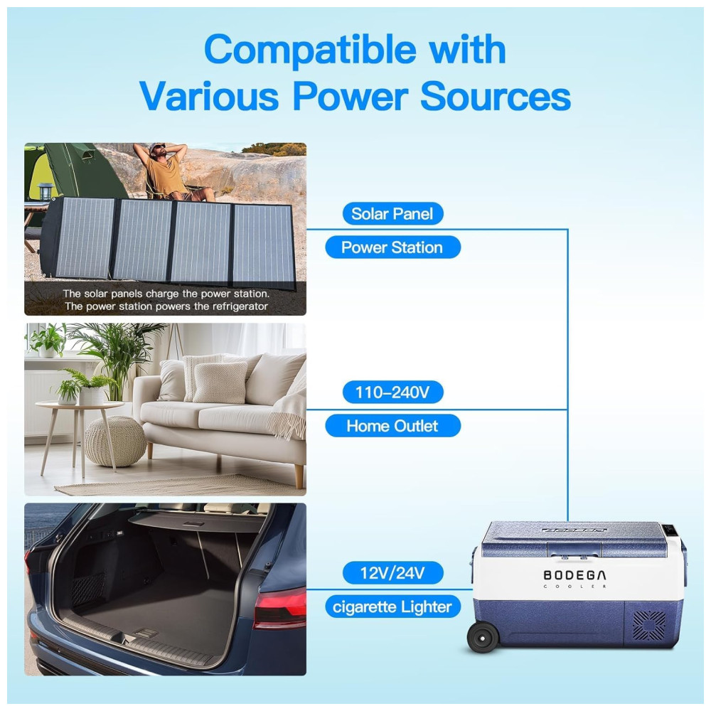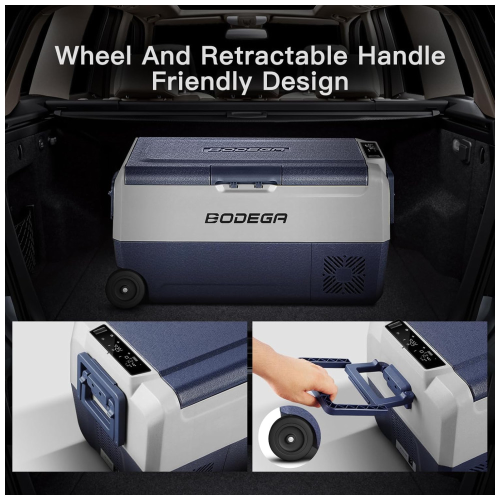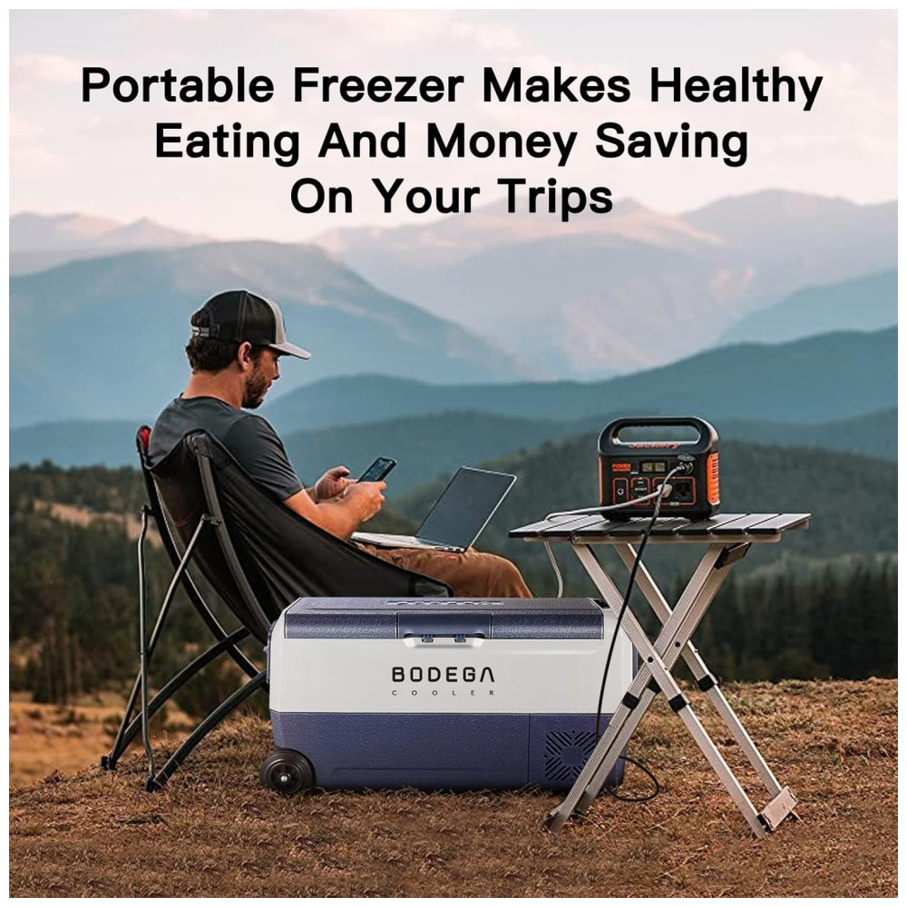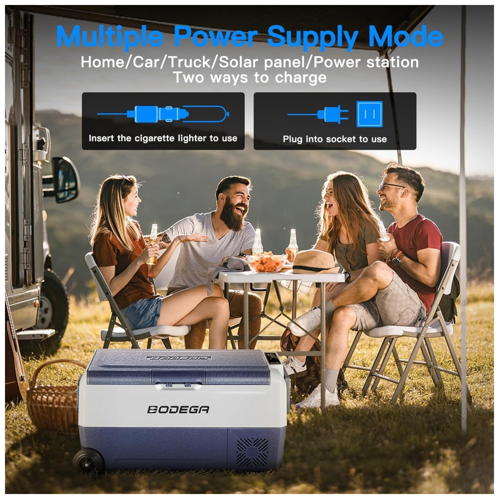 CONGELADOR DE CARROS DE ZONA DUPLA Ambas as zonas com 18L 19 Quart 36L 38 Quart. Você pode controlar a temperatura da zona dupla independente. Se você quiser apenas uma zona, pode retirar a placa do meio. Você pode colocar carnes, vegetais, bebidas e as demais necessidades frias. Esta é a melhor escolha para acampar, festa, viagens e atividades ao ar livre