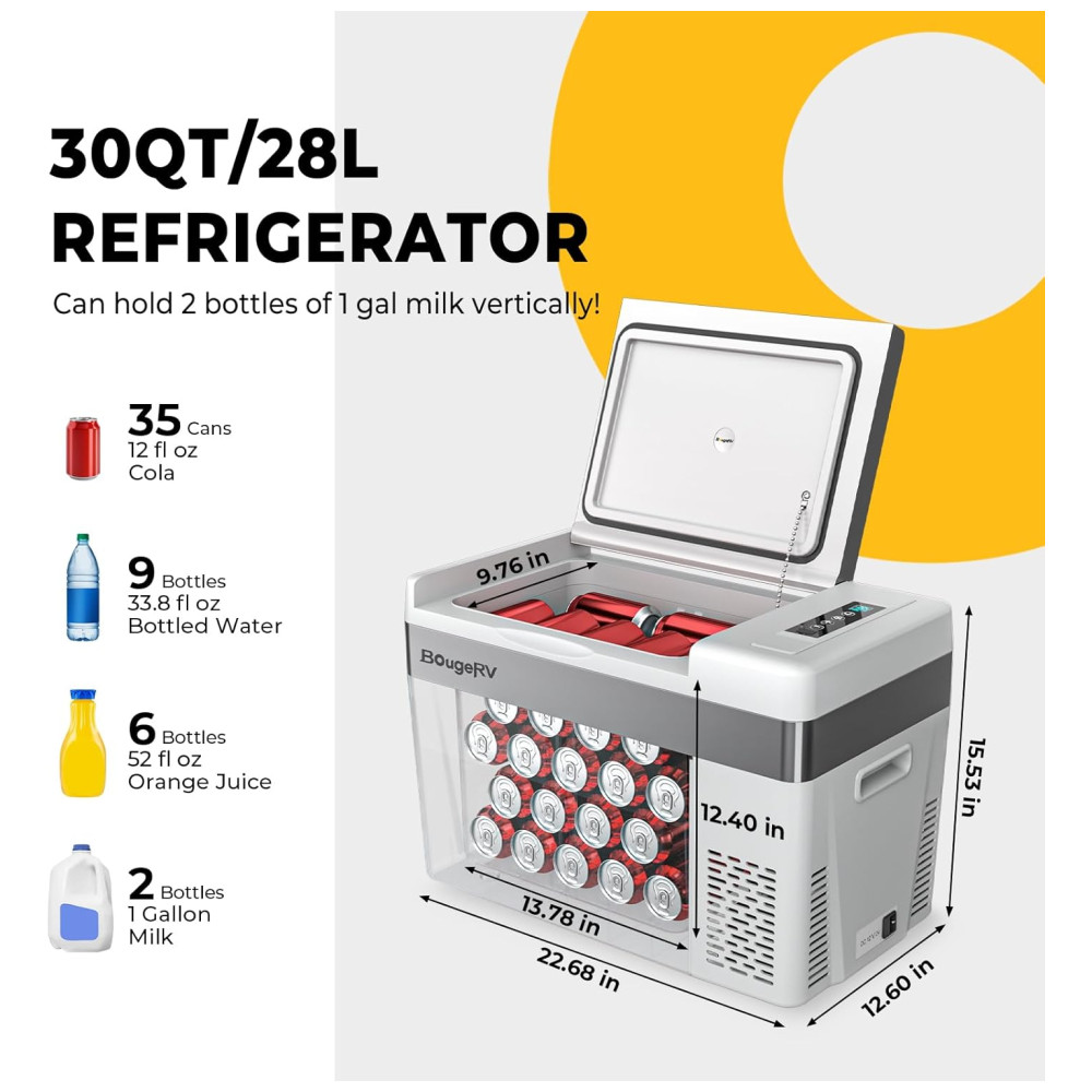 Geladeira e Congelador Portátil 30L com Tampa 12 24V DC 110 240 Volt AC BougeRV Cinza