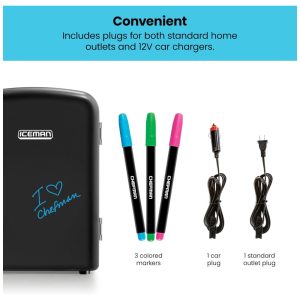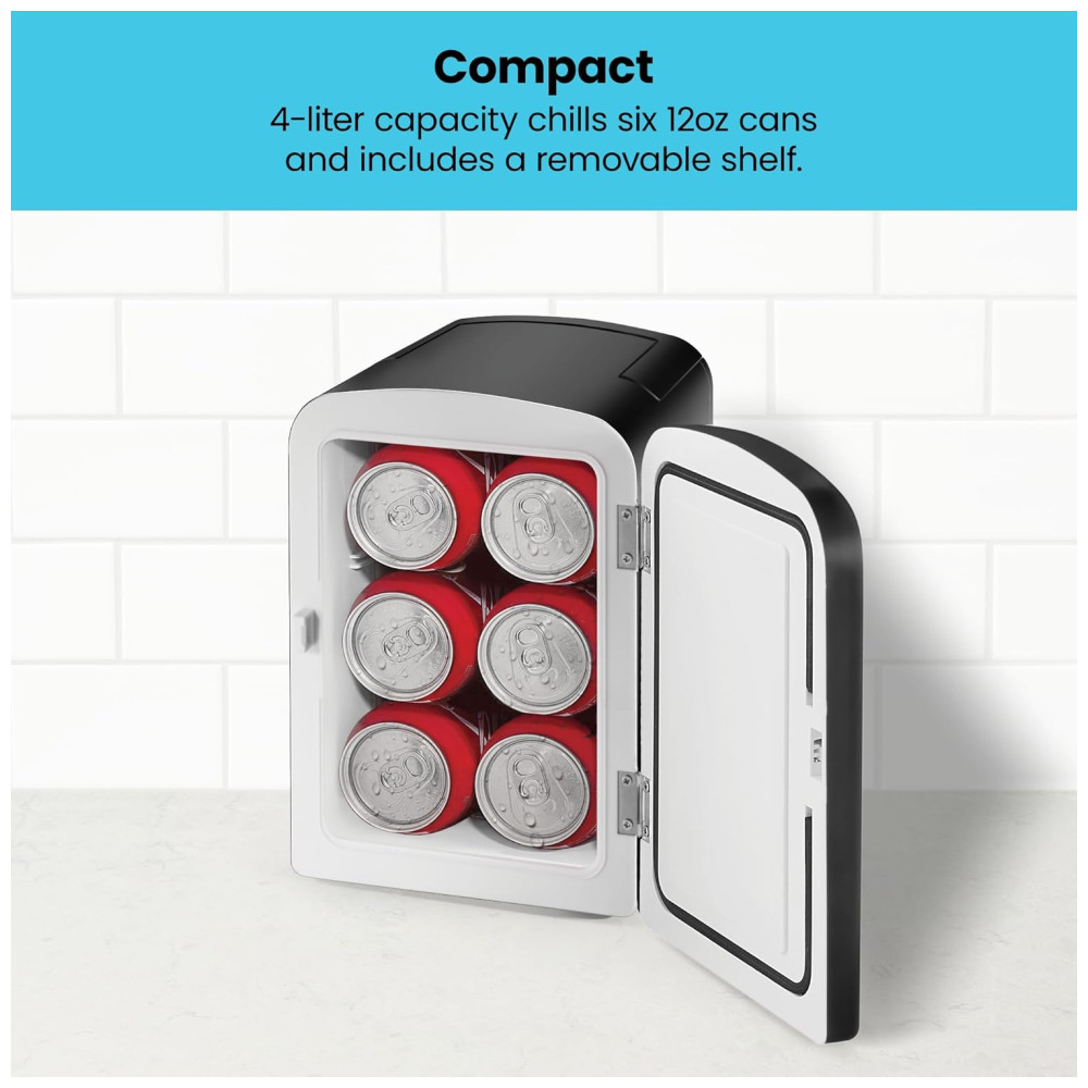 Geladeira e Frigobar para carro Automotiva 4 L 6 latas 340gr 12V e Inclui Plugue Doméstico Quente Frio CHEFMAN Mini Portable Eraser Board Preto