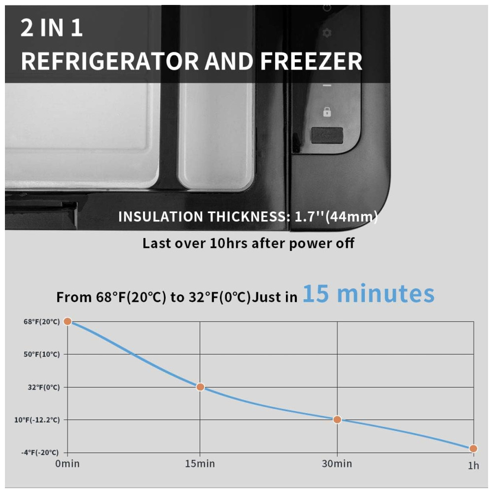 MANTENHA SE REFRIGERADO E FRESCO Construção de propriedade de vedação confiável, isolamento de espuma espesso e de alta densidade. Continua a manter o desempenho de resfriamento durante sua viagem. Tudo fresco e super economia de energia