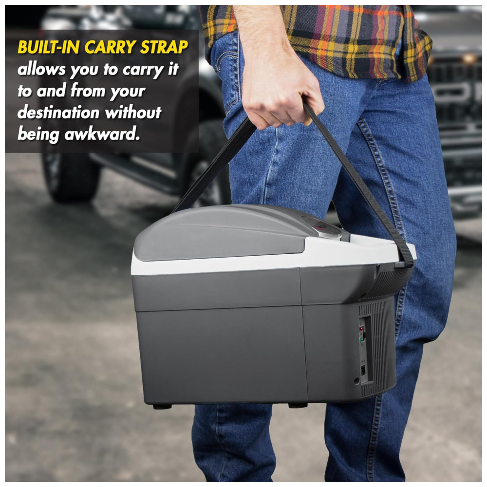 CONVENIÊNCIA DE MOVIMENTO com uma alça de transporte integrada, você pode transportar o refrigerador aquecedor pessoal 6 Quart de e para o seu destino sem ser desajeitado.