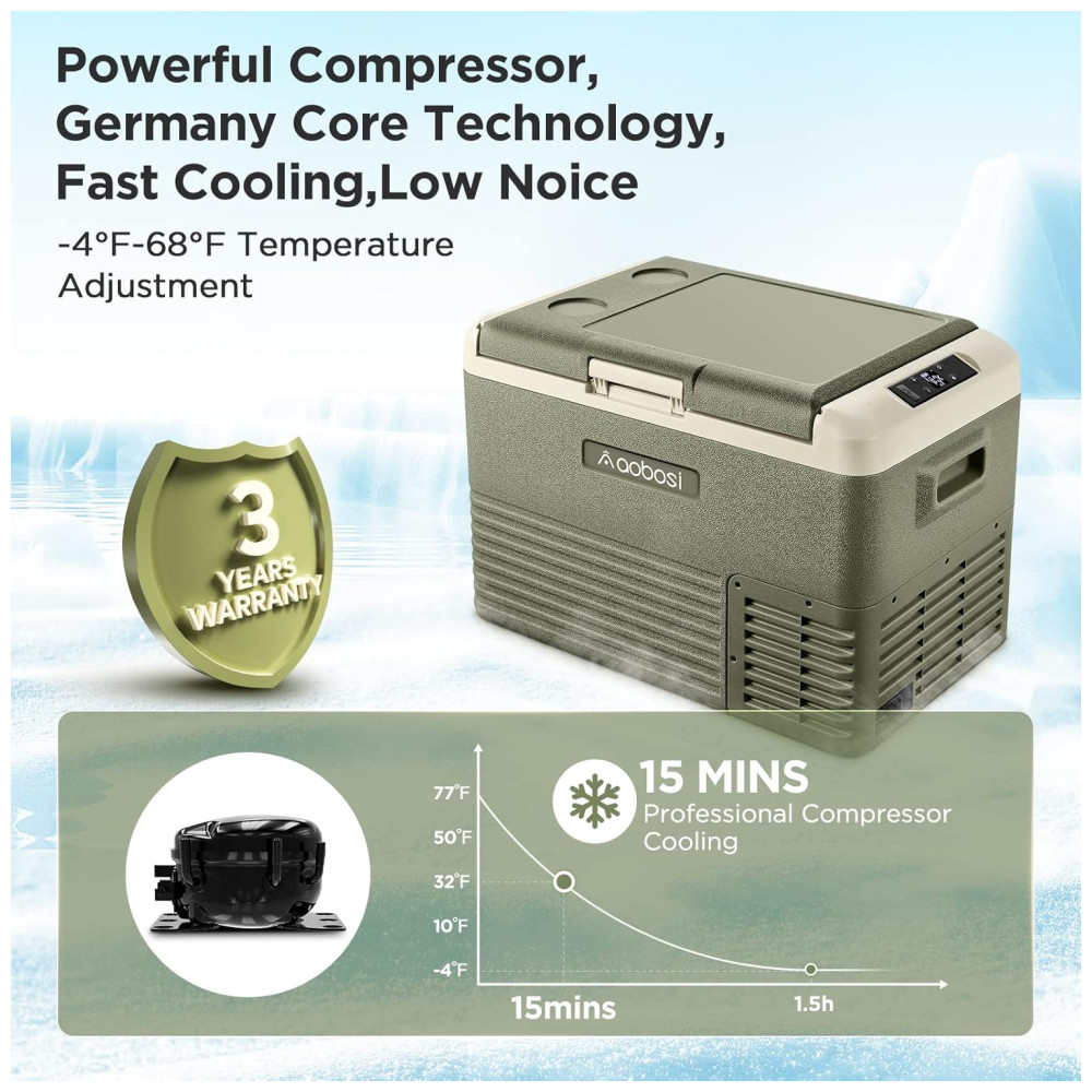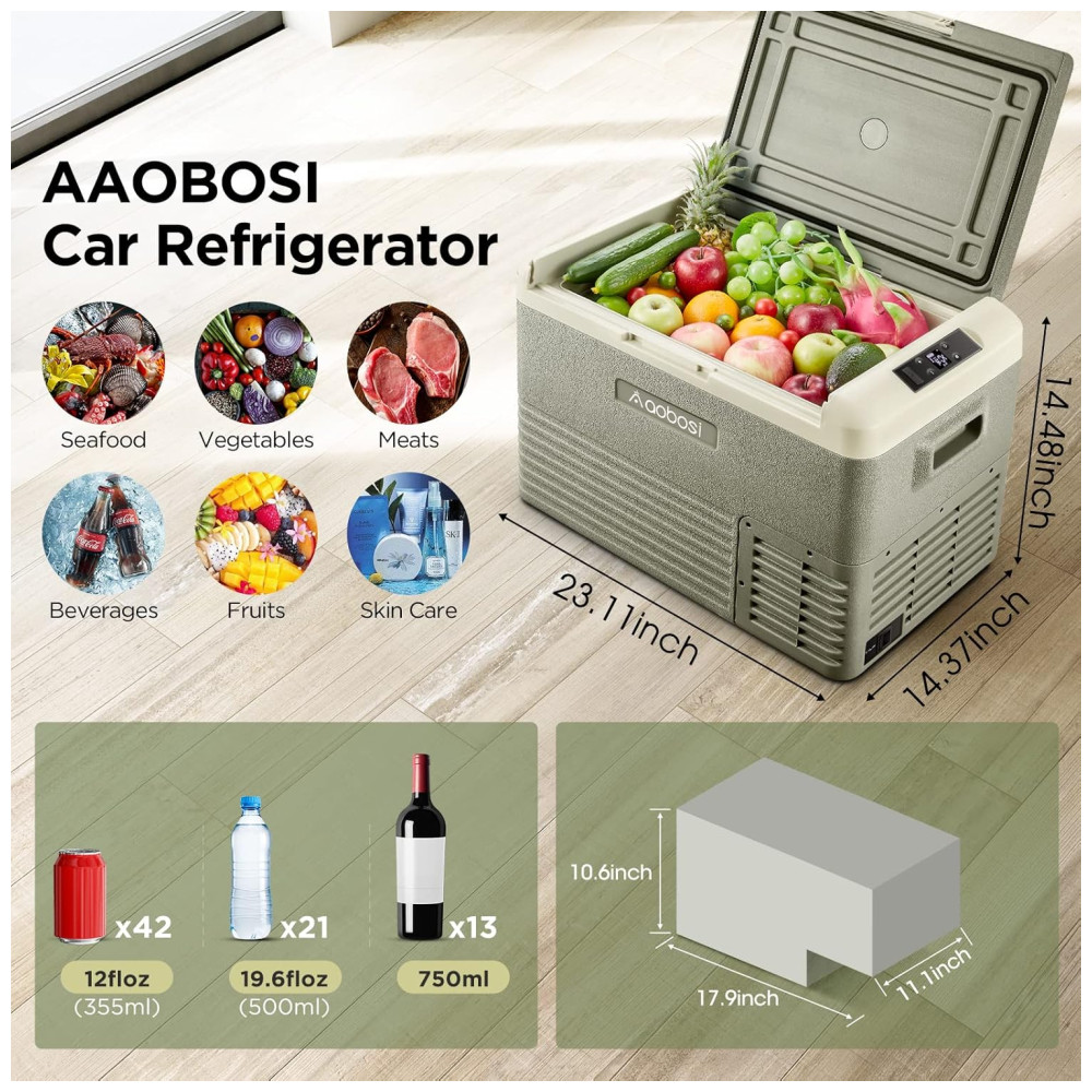 Geladeira Portátil 30L com Controle Via APP 2 24V DC 110 240V AC AAOBOSI Verde