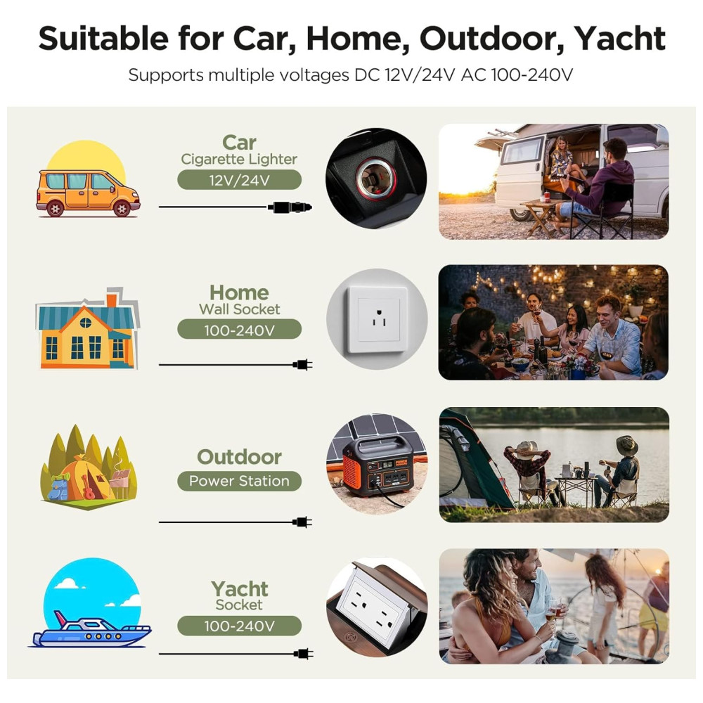 Proteção contra baixo ruído e tensão: Este refrigerador elétrico foi projetado com um nível de ruído de 45 decibéis, sendo mais silencioso do que um refrigerador doméstico padrão. Este robusto refrigerador de 12 volts também possui uma proteção de bateria embutida com corte automático de detecção de baixa tensão para garantir que a bateria do carro não seja drenada, maximizando assim a vida útil da bateria do carro.