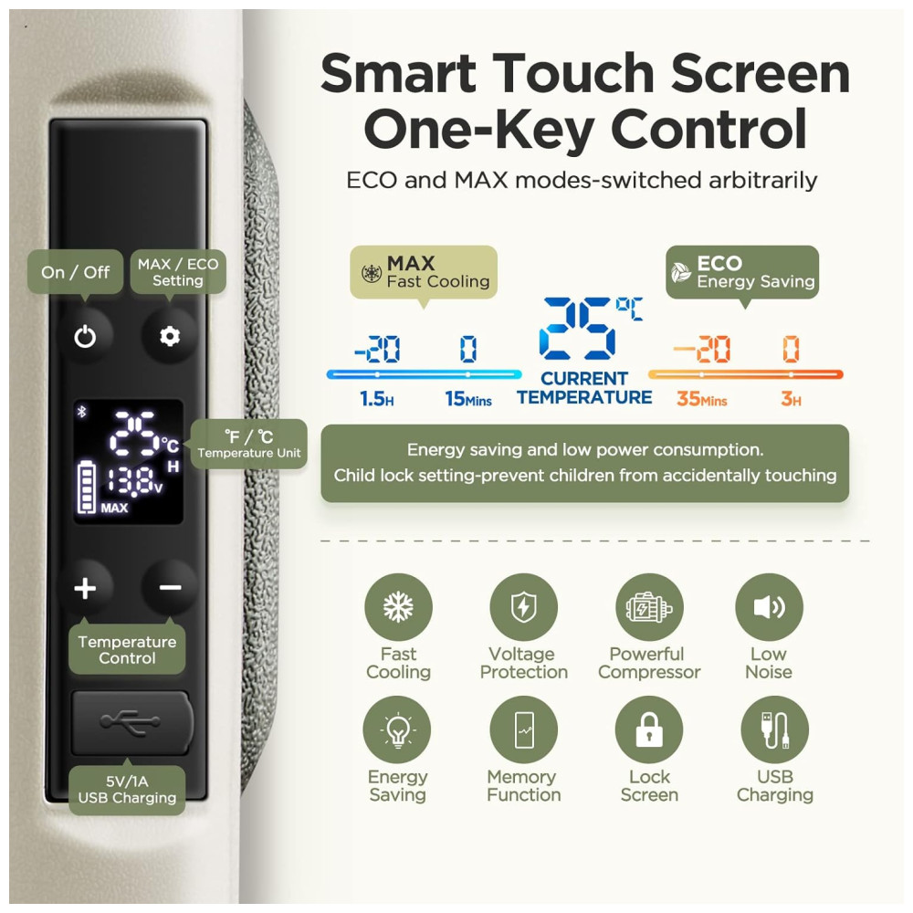 Controle de resfriamento rápido e APP inteligente: O refrigerador AAOBOSI de 12 volts usa um compressor de ponta com tecnologia avançada de refrigeração 3D para resfriamento rápido de 68F a 32F em apenas 15 minutos. Pode ser como freezer ou geladeira, não é necessário gelo. Com o aplicativo complementar para smartphone, você pode controlar facilmente o controle remoto e monitorar o status da operação do refrigerador. Você pode ajustar as configurações de temperatura, monitorar o nível da bateria e visualizar o tempo de execução.