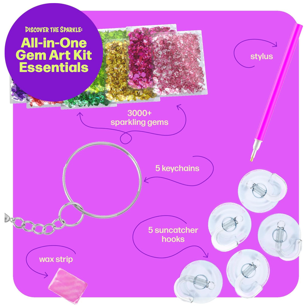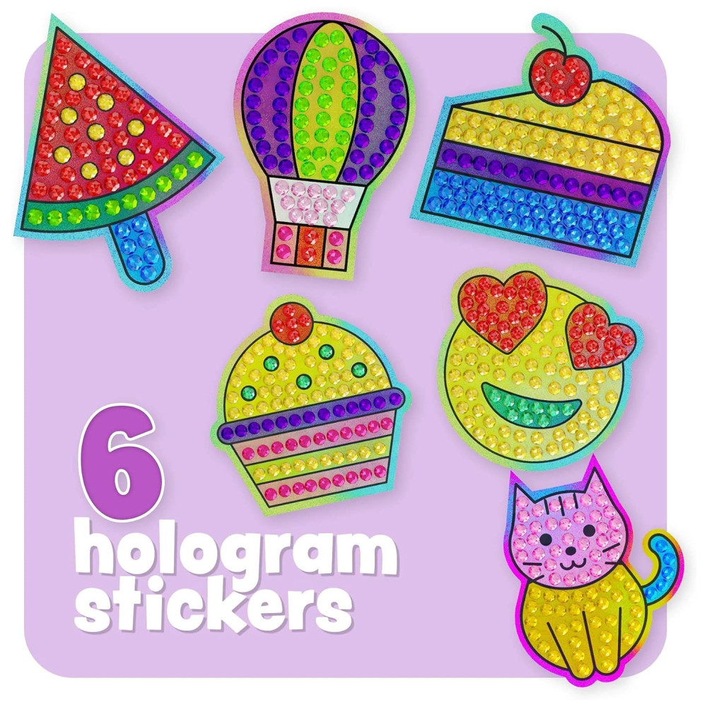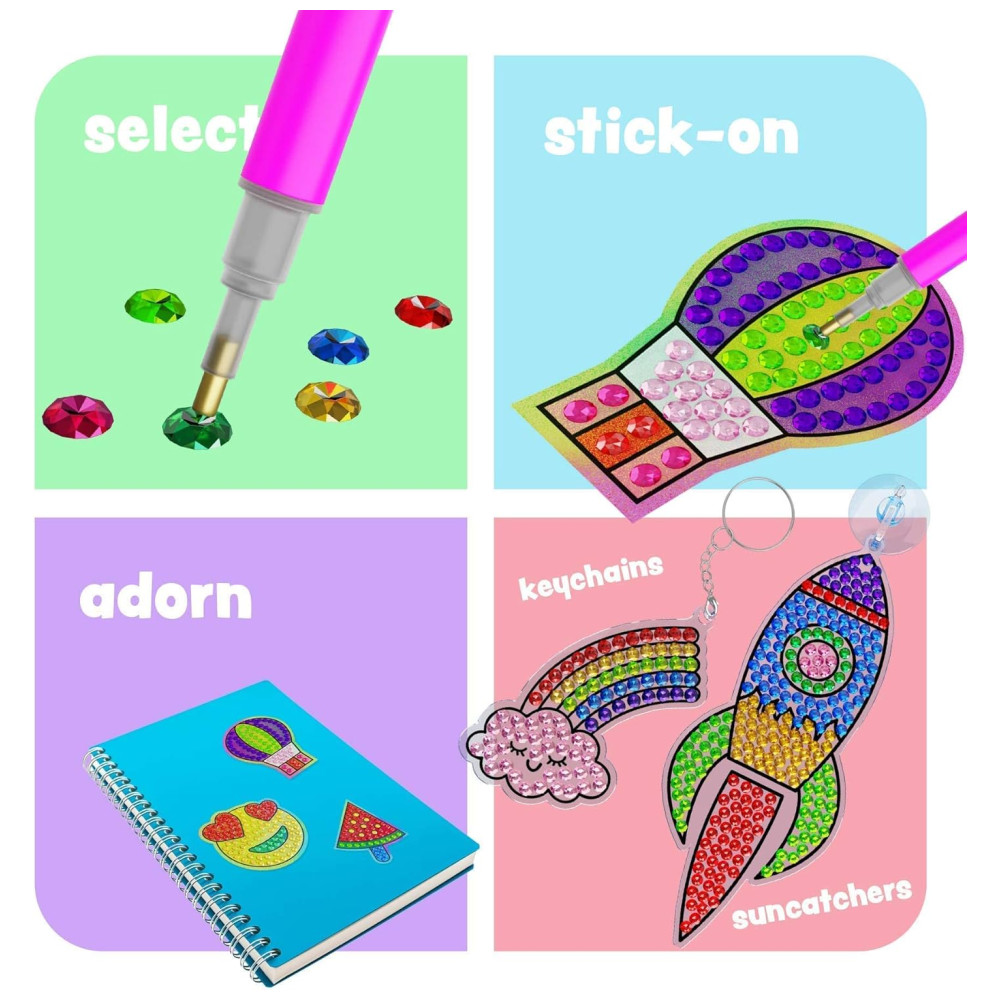 Libere e desperte sua criatividade designs deliciosos e coloridos estão esperando por você para animar com mini diamantes cintilantes. Faça apanhadores de sol para iluminar as janelas de qualquer sala, chaveiros para pendurar em qualquer lugar e adesivos de holograma para colocar onde quiser.