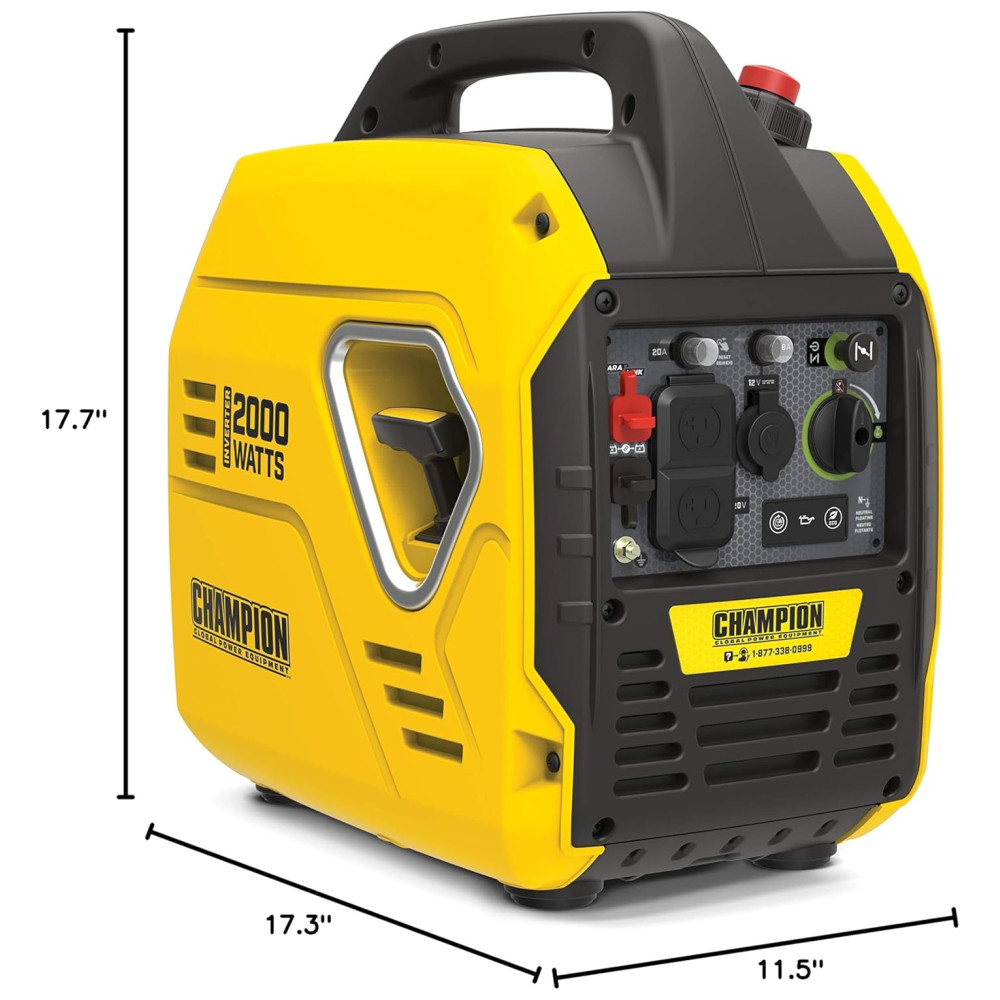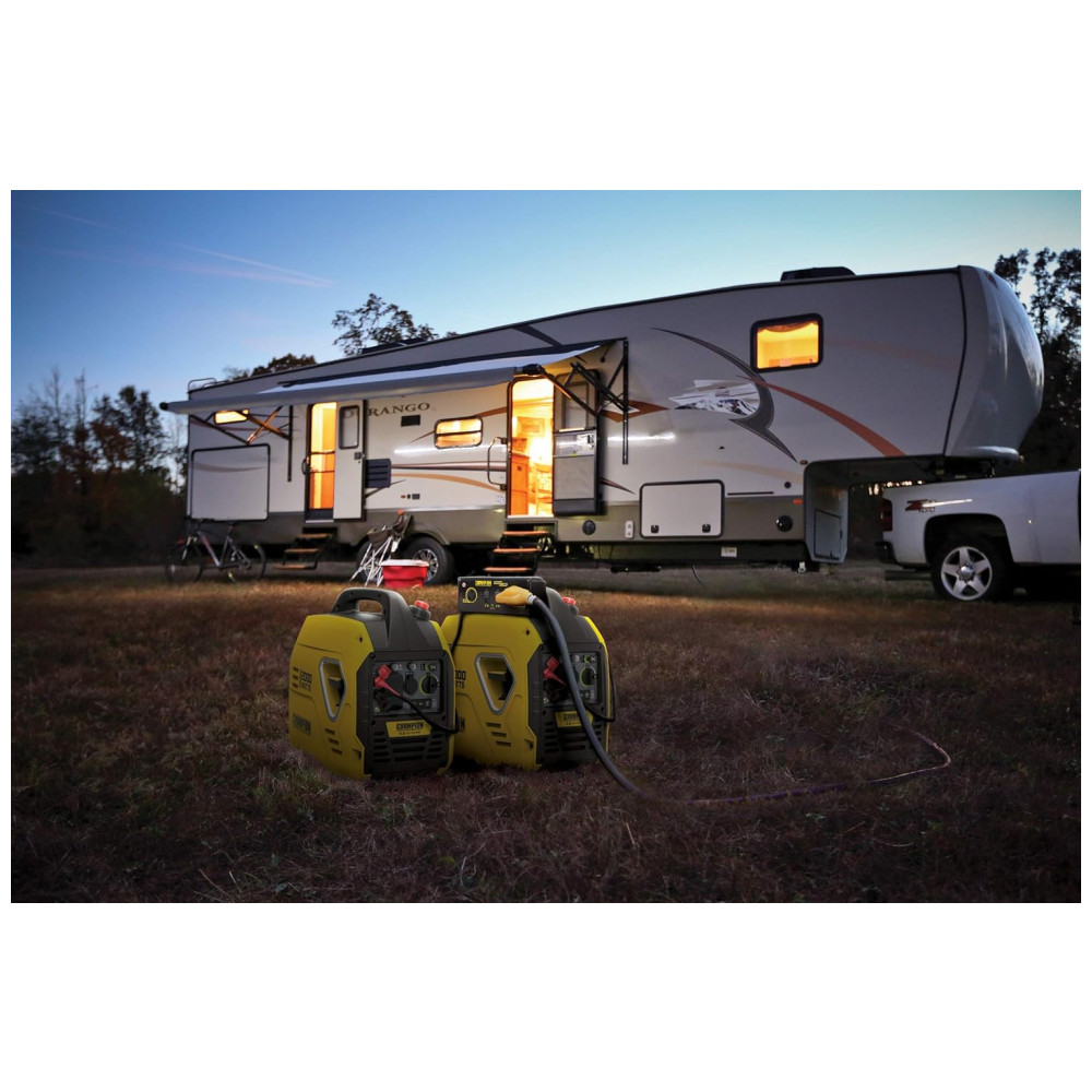 O gerador inversor de 2.000 watts da Champion é ultraleve, tornando a energia portátil mais conveniente do que nunca. Confie no motor de 79 centímetros cúbicos cc de 4 tempos OHV e desfrute de 53 dBA silenciosos por até 11,5 horas de autonomia. O kit paralelo clipado vendido separadamente com tomada RV Ready e eres de potência dobra sua produção.