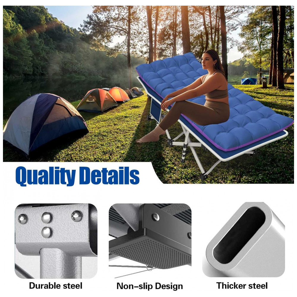 GETOVIN Cama Acampamento Camping Dobrável Portátil 4 Posições até 200 kg Azul