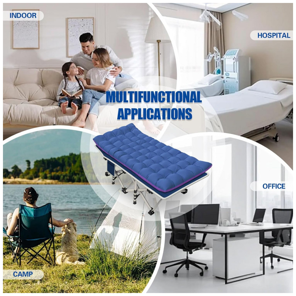 Sem ferramentas ou sem montagem Este berço pode ser sem necessidade de montagem ou ferramentas. Dobre em segundos, fácil de transportar na bolsa , capa de nylon resistente correspondente para zenamento e viagem sem esforço. É um berço de acampamento para adultos e crianças. Perfeito Para camping, viagem, praia, quintal, soneca de escritório, etc.