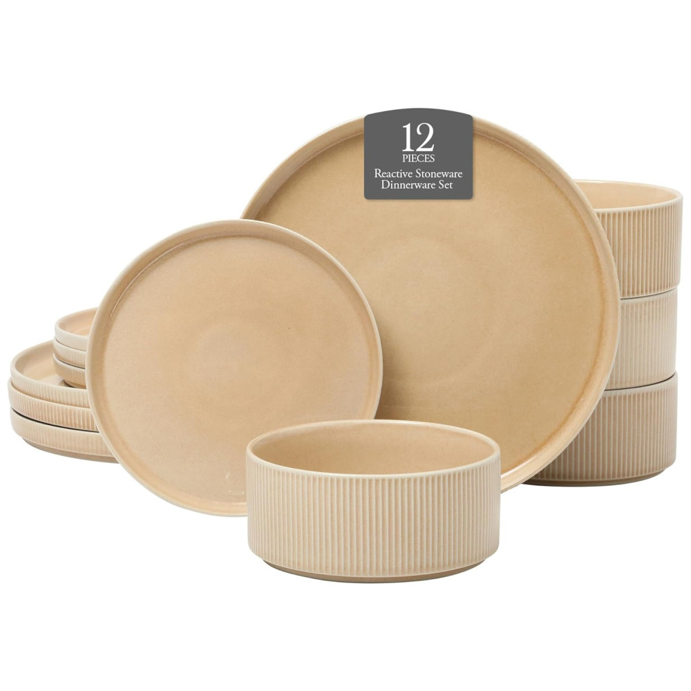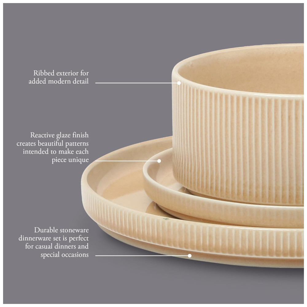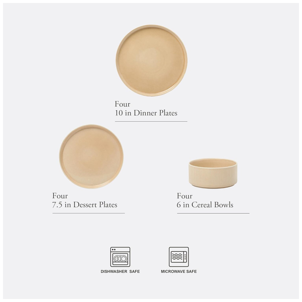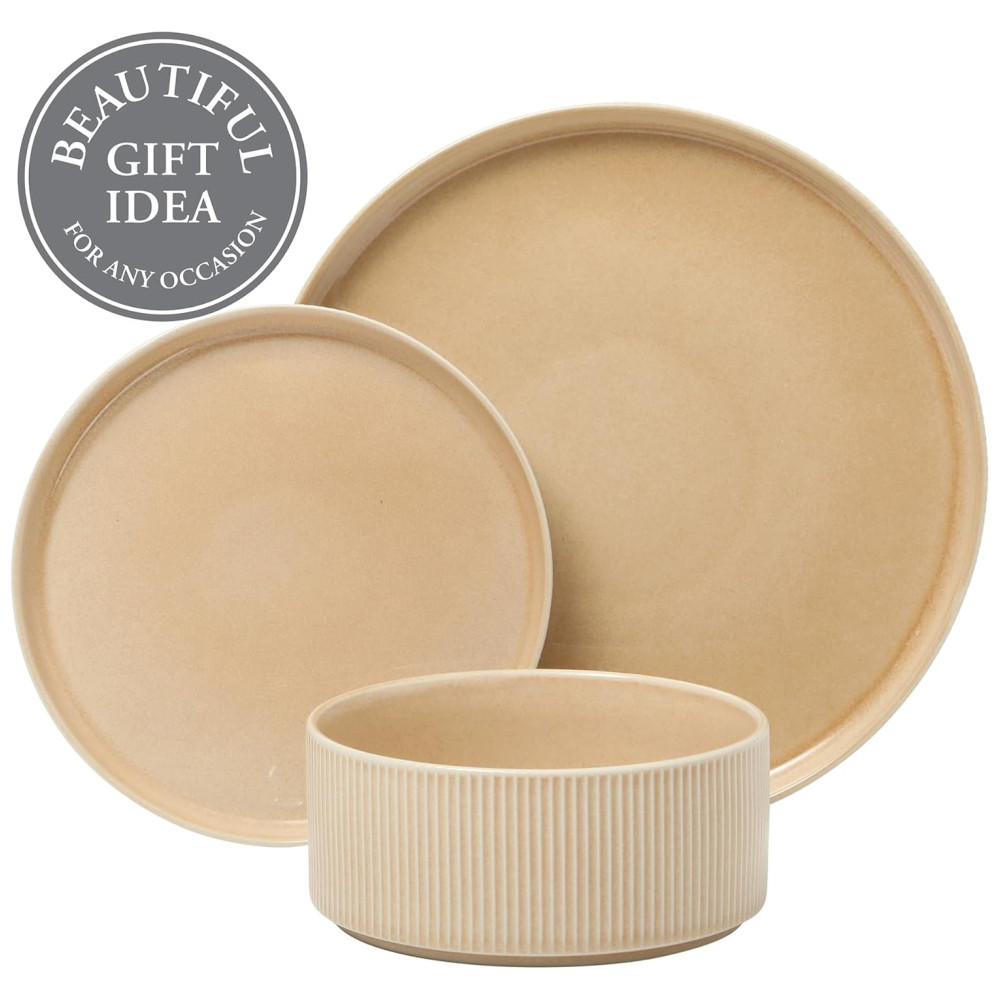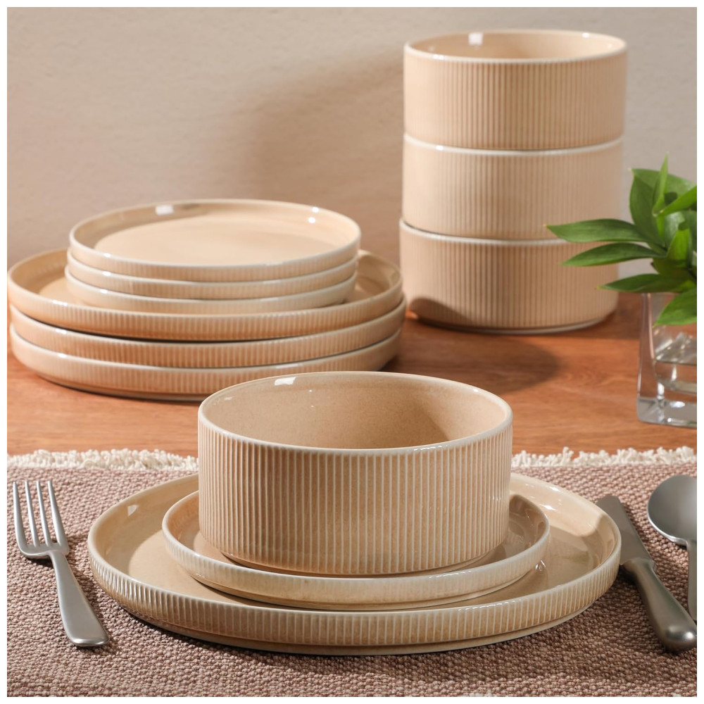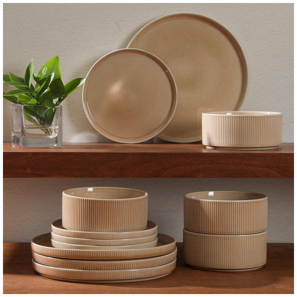 Gibson Elite Solana Coast: Conjunto de Jantar em Cerâmica de 12 Peças para 4 Pessoas em Reativo de Estonewave Design Moderno Terracota Laranja.