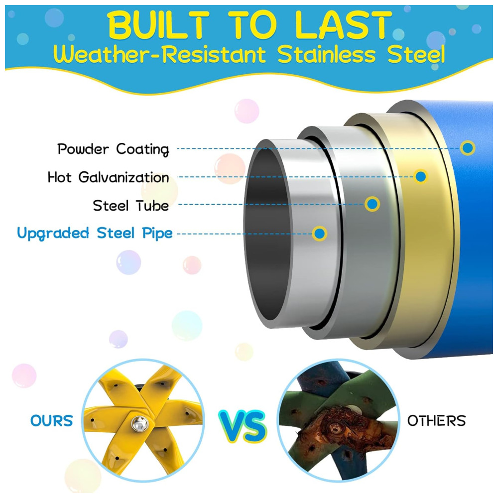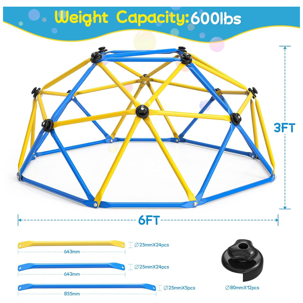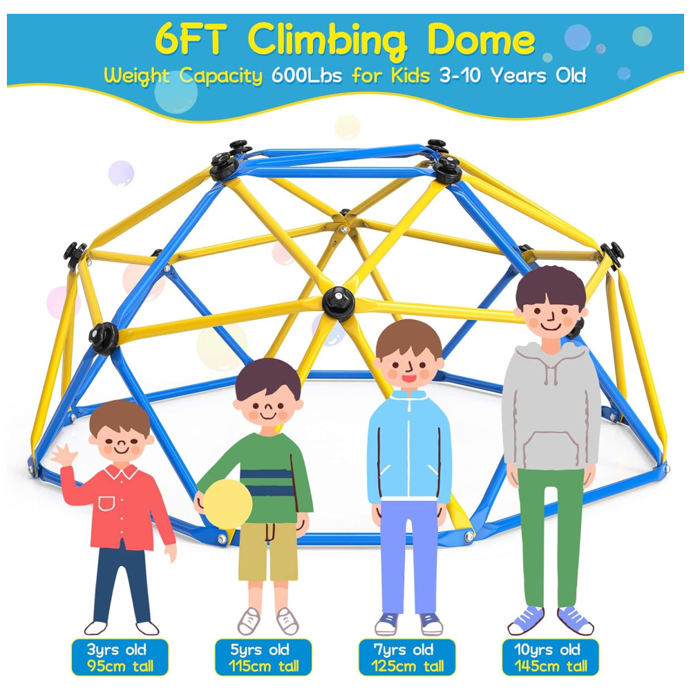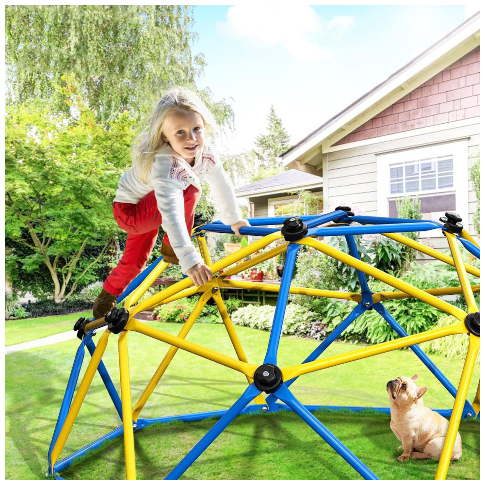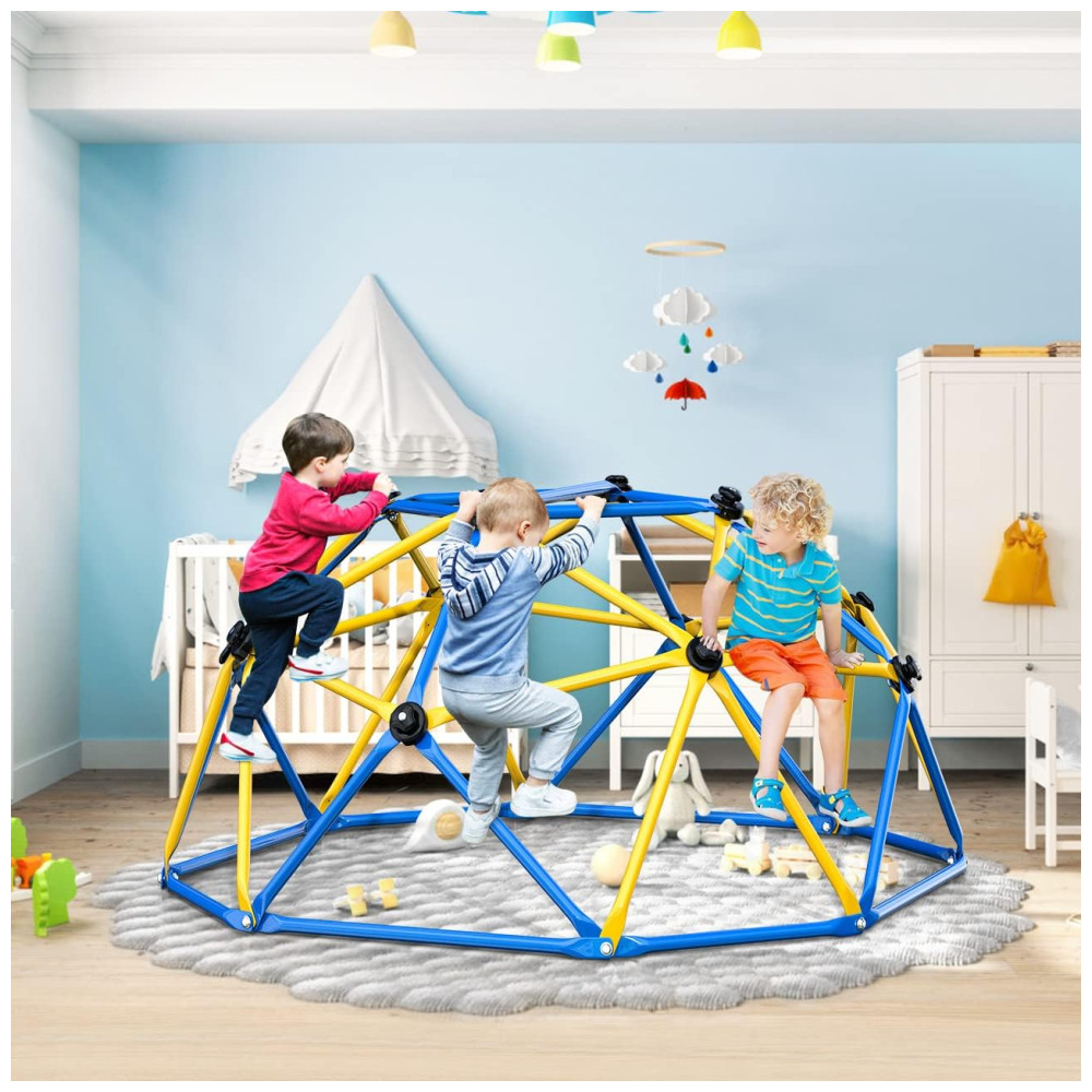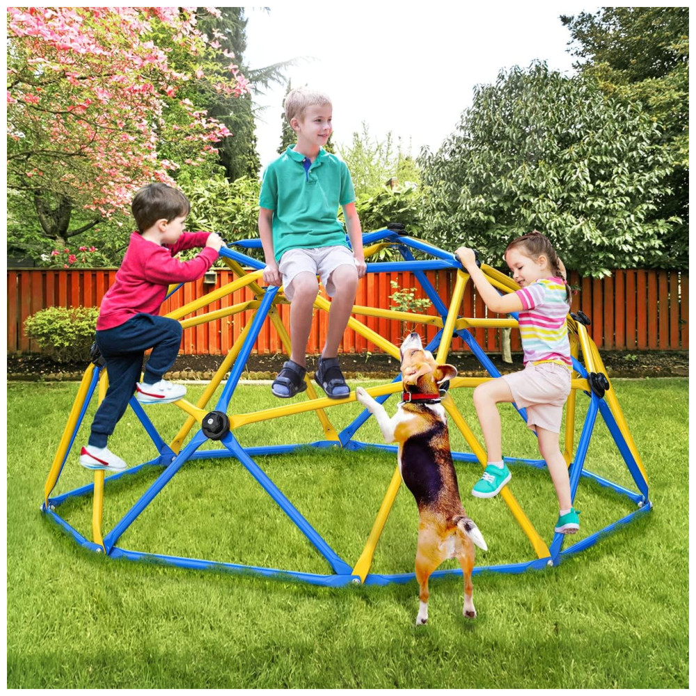 O Dome Climber é perfeito para crianças cheias de energia, oferecendo uma estrutura dinâmica para horas de diversão escalando. Aumente a força, coordenação e equilíbrio das crianças, afastando-as dos jogos de celular. O topo é uma plataforma quadrada horizontal com capacidade de peso de 109kg e funciona como uma barra de ginástica para fortalecer os braços das crianças. Feito de aço galvanizado resistente à ferrugem e às intempéries, suporta 272kg e até 23 crianças brincando ao mesmo tempo. As pegadas de escalada garantem diversão e segurança, cobrindo os parafusos. Fácil de montar, com manual e vídeo de instruções. Marca: GIKPAL.